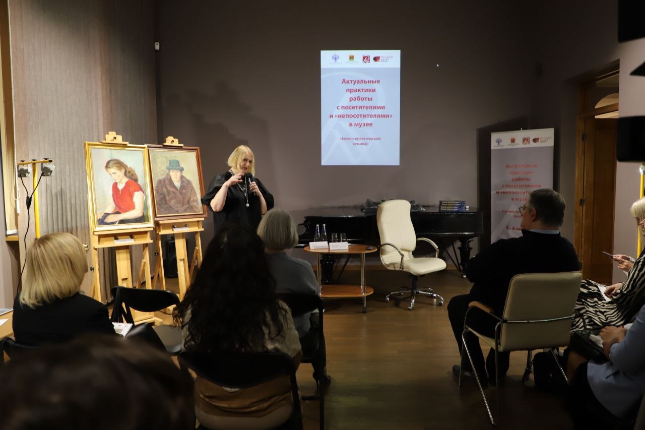 В приветственном слове Анна Юдина отметила, что Русский музей с 2019 года в рамках деятельности Филиала в Кемерове проводит обучающие семинары для музейных работников. Это очень важная составляющая в развитии региона, поскольку Кузбасс в последнее время переживает настоящую культурную революцию. В Кемеровской области строится большое количество объектов, проводится множество масштабных мероприятий, привлекающих в регион тысячи посетителей, и основная нагрузка по организации культурной программы для гостей Кузбасса ложится на плечи музейных работников. Семинар позволит слушателям овладеть новейшими практиками работы с посетителями и «непосетителями» в музее: проведением экскурсий в формате арт-медиации, пройти тренинги по культуре речи и узнать о подаче материала для зрителей с ментальными особенностями.