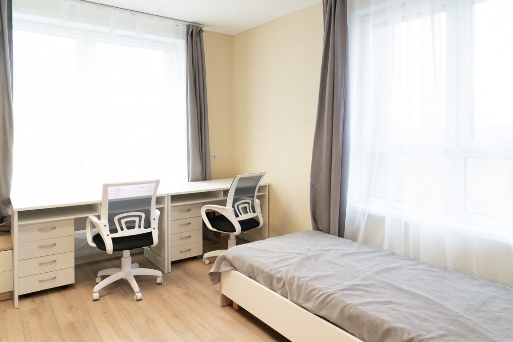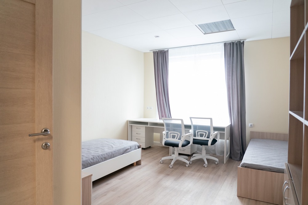 В общежитии кемеровского РГИСИ для проживания студентов оборудованы блоки с кухней, душевыми, санузлами и гардеробными. В блоке по две комнаты на два человека. На каждом этаже есть хозяйственно-бытовые комнаты для стирки, сушки и глажения белья. Предусмотрены помещения для самоподготовки, есть медицинский блок с изолятором и процедурным кабинетом. Для маломобильных жильцов обеспечена доступная среда, на входе в кампус предусмотрен электроподъемник.