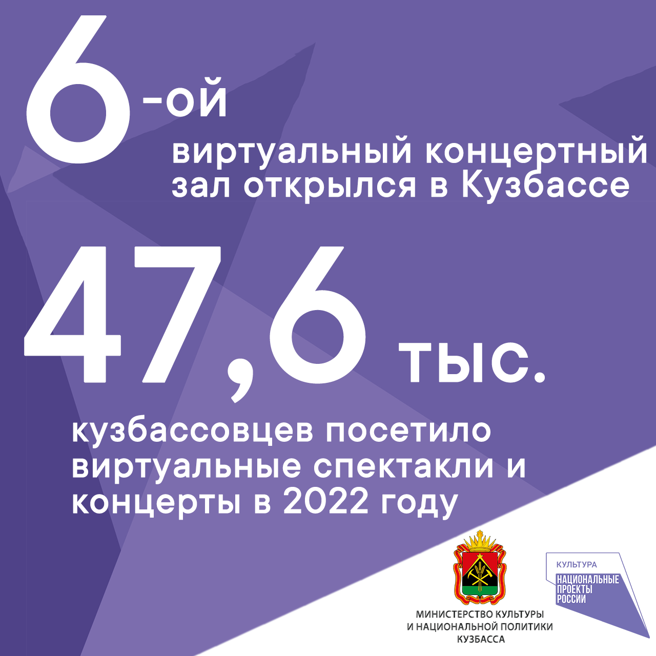 Более 47,6 тысяч кузбассовцев посетили концерты и спектакли в виртуальных концертных залах в этом году. Всего с начала старта нацпроекта более 100 тысяч человек, не выезжая за пределы своих муниципалитетов, стали зрителями федеральных и региональных культурных проектов. В 2022 году в регионе открылся шестой по счету виртуальный концертный зал в культурно-досуговом комплексе Центрального района Новокузнецка.