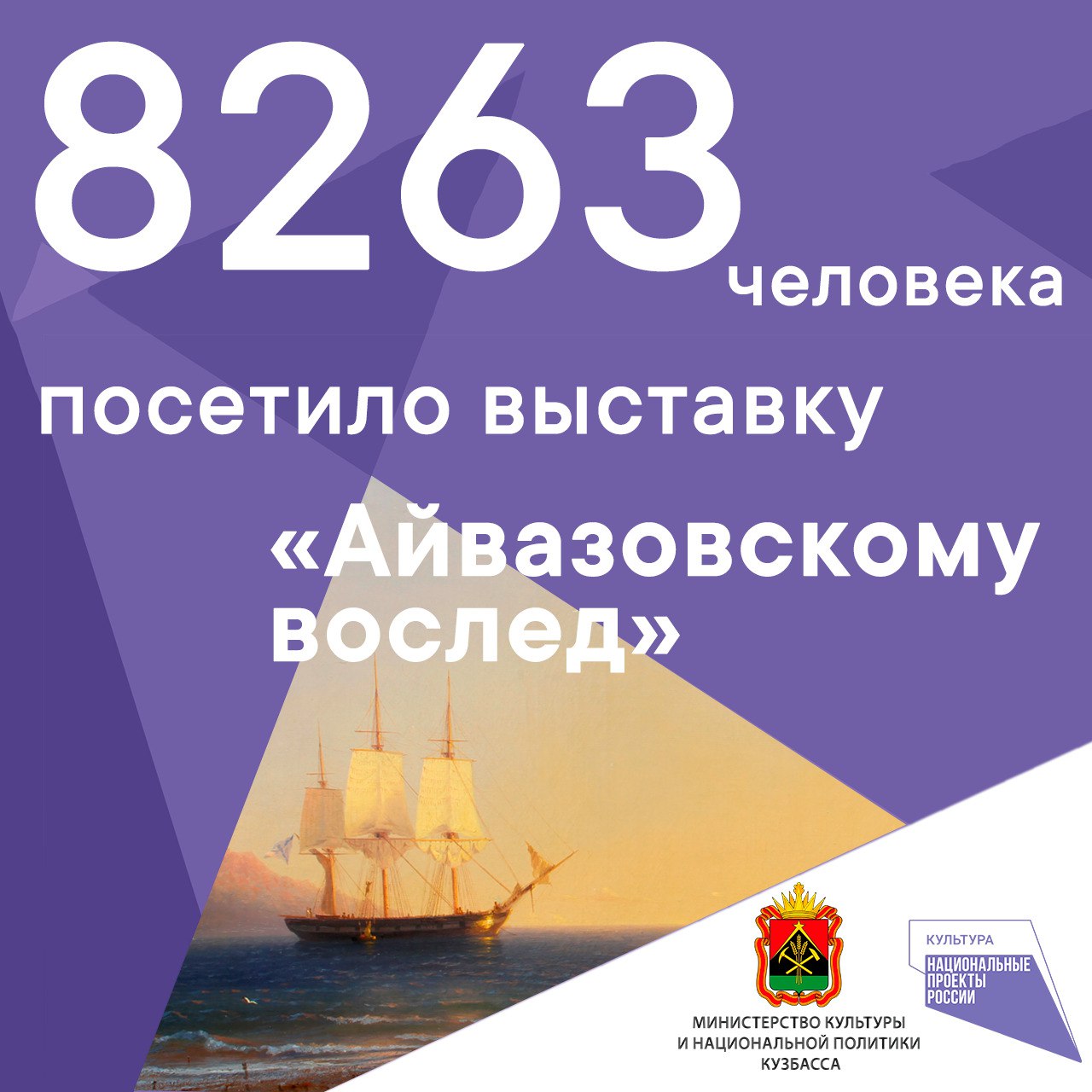 Кроме того, в рамках нацпроекта «Культура» в Музее изобразительных искусств КуZбасса прошла выставка произведений из собрания Центрального военно-морского музея имени императора Петра Великого «Айвазовскому вослед...». Она собрала рекордное количество посетителей: было куплено 8 263 билета — абсолютный максимум за всю историю учреждения.