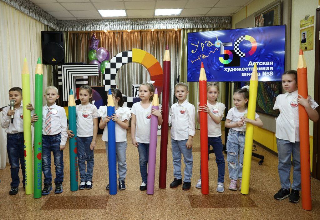 Педагоги и юные художники ДХШ №8 Прокопьевска принимают поздравления с 50-летним юбилеем школы