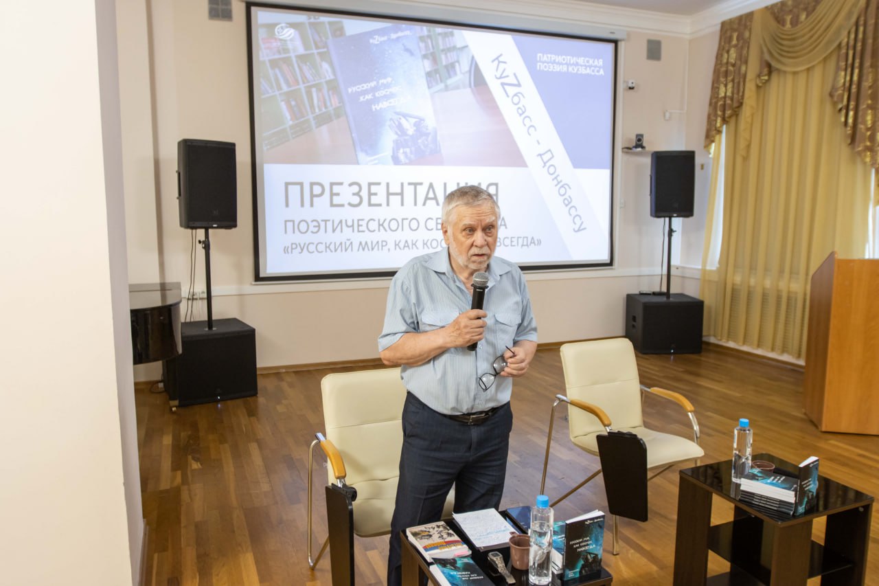 В Главной библиотеке Кузбасса прошла презентация новой поэтической книги «Русский мир, как космос, навсегда».Сборник стихов посвящен Донбассу и СВО. Инициаторы издания – Союз писателей Кузбасса и Кузбасский центр искусств. Автор идеи издания сборника – Борис Бурмистров, известный в России кузбасский поэт, председатель Правления Союза писателей Кузбасса. Составители сборника – Борис Бурмистров, Сергей Донбай и Дмитрий Мурзин.