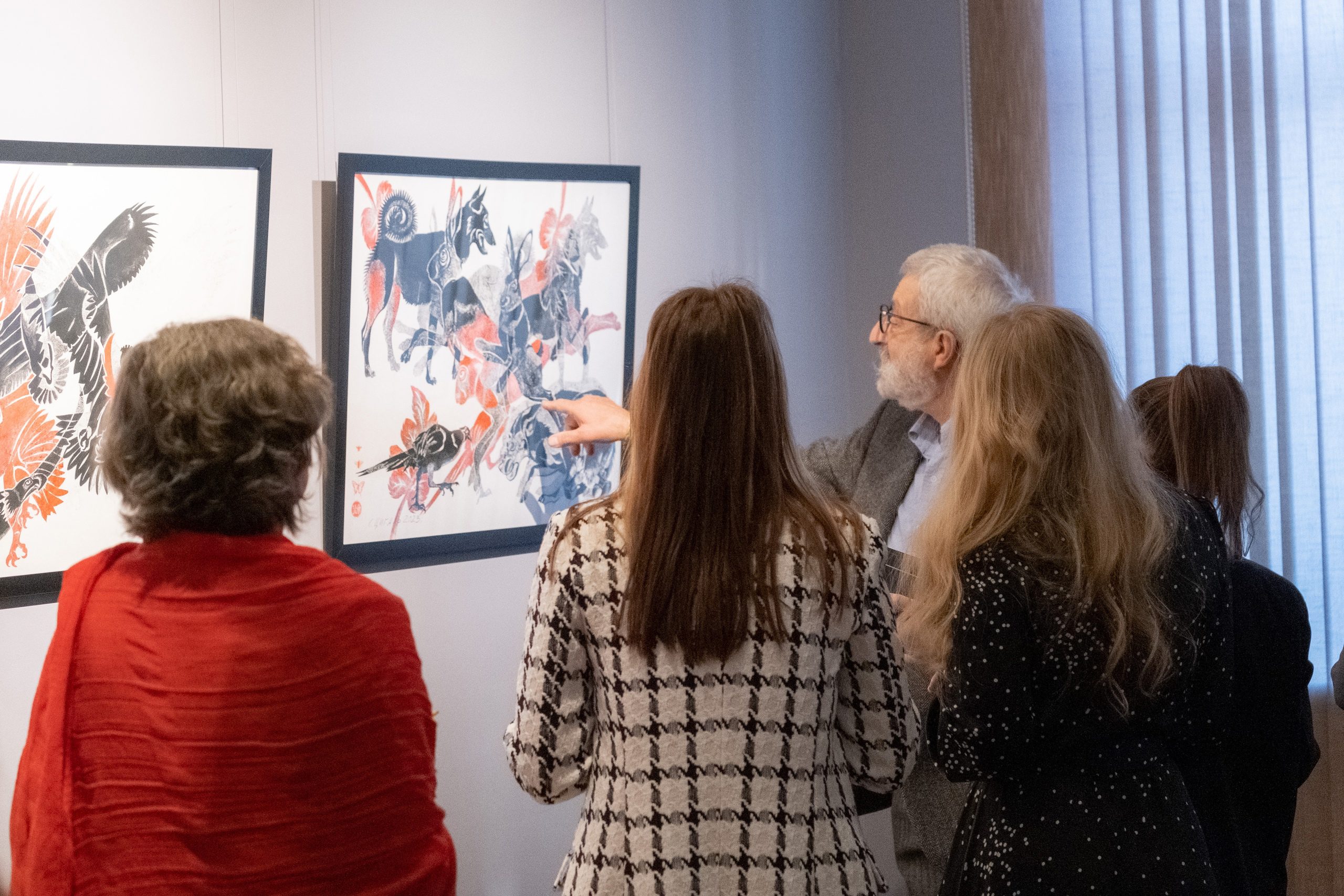 В экспозиции выставки представлены 100 графических произведений из собрания автора в анималистическом жанре, представляющие богатый животный мир. Многие из них образуют тематические серии: «Звери на черном фоне», «Насекомые», «Коты».