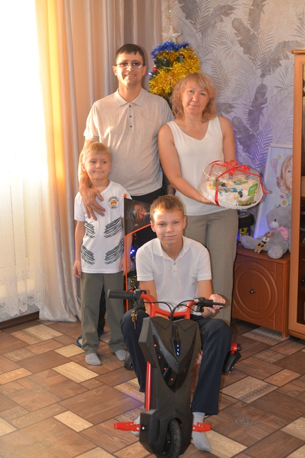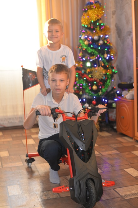Дед Мороз и Снегурочка передали Марку Эргардту подарок от губернатора — дрифт-байк и сладости. «Марк очень активный, освоил езду на гироскутере и давно мечтал о дрифт-байке. Первый раз попробовал кататься на нем в Зенковском парке. С тех пор только о нем и говорит. Это было по-настоящему заветное желание. Поэтому мы всей семьей решили написать сообщение на сайте «Елки желаний». И теперь у Марка есть свой дрифт-байк», — рассказала мама подростка Светлана.