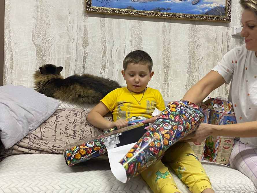 Андрею Соколову новогодние персонажи передали от Сергея Цивилева конструктор LEGO и сладкий подарок. «Действительно, свершилось чудо в Новый год», — поделилась радостью его мама Екатерина.