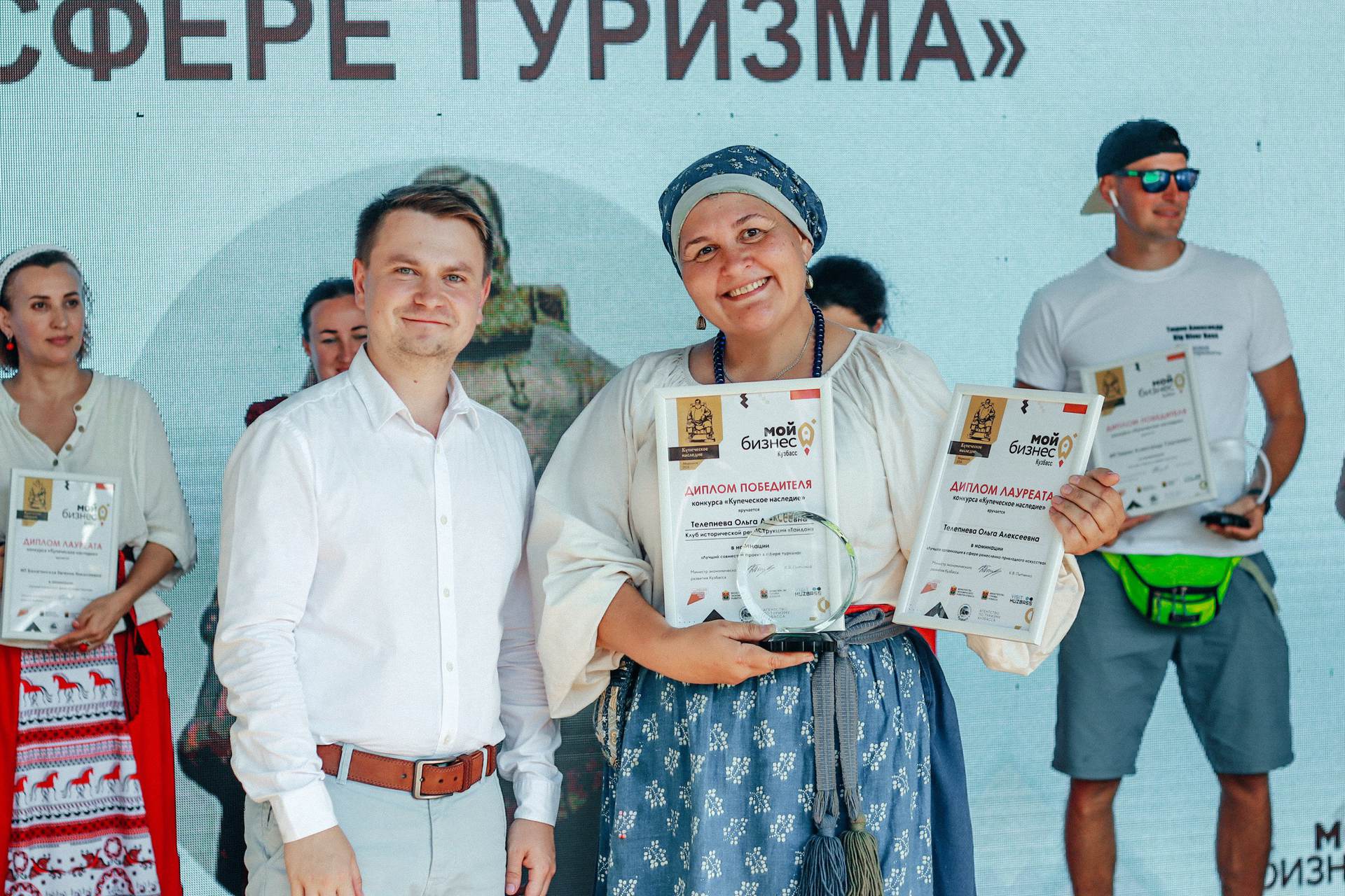 Также на фестивале наградили участников регионального конкурса «Купеческое наследие». Он учрежден центром «Мой бизнес», который работает в рамках нацпроекта «Малое и среднее предпринимательство», инициированного Президентом РФ Владимиром Путиным. Его цель — поощрение лучших проектов в сфере туризма и гостеприимства, а также компаний, внесших значительный вклад в развитие туристического бизнеса в Кузбассе.