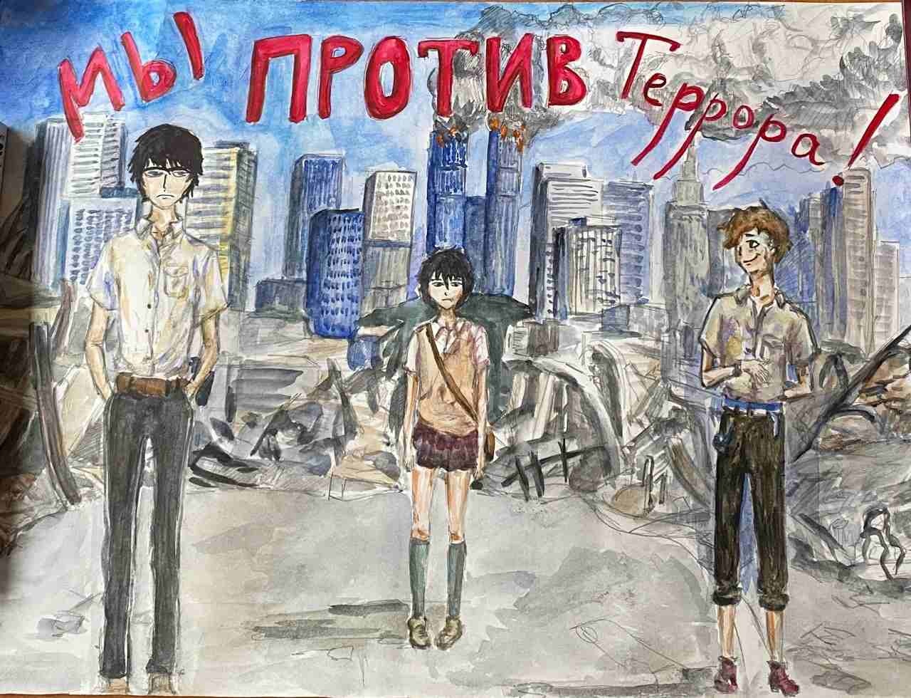 15. «Мы против террора». Автор - Лисичкина Мария. (ГАПОУ «Кузбасский художественный колледж»).
