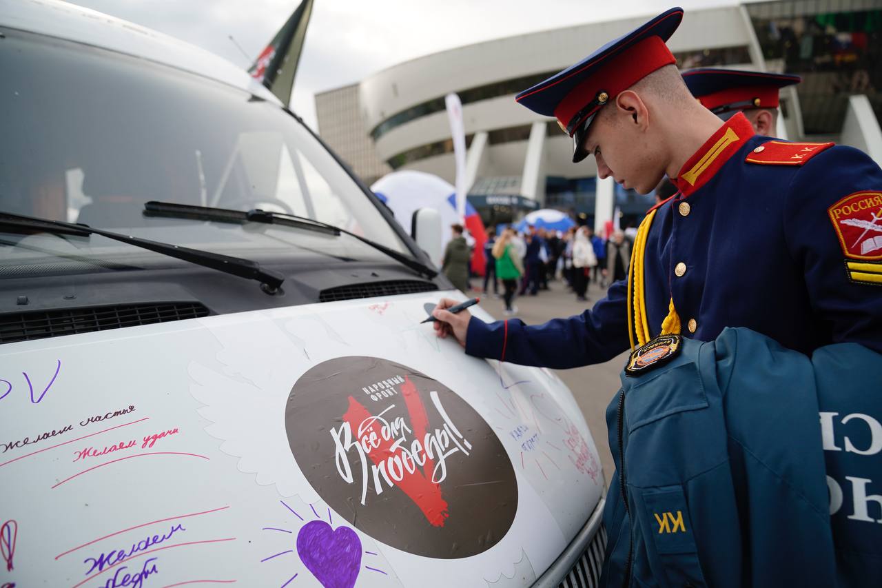 Гости фестиваля увидели фотовыставку Народного фронта и Народных полков Кузбасса «Все для Победы!», а также посетили выставку автомобилей, которые отправятся в зону СВО, и написали на них свои добрые пожелания.