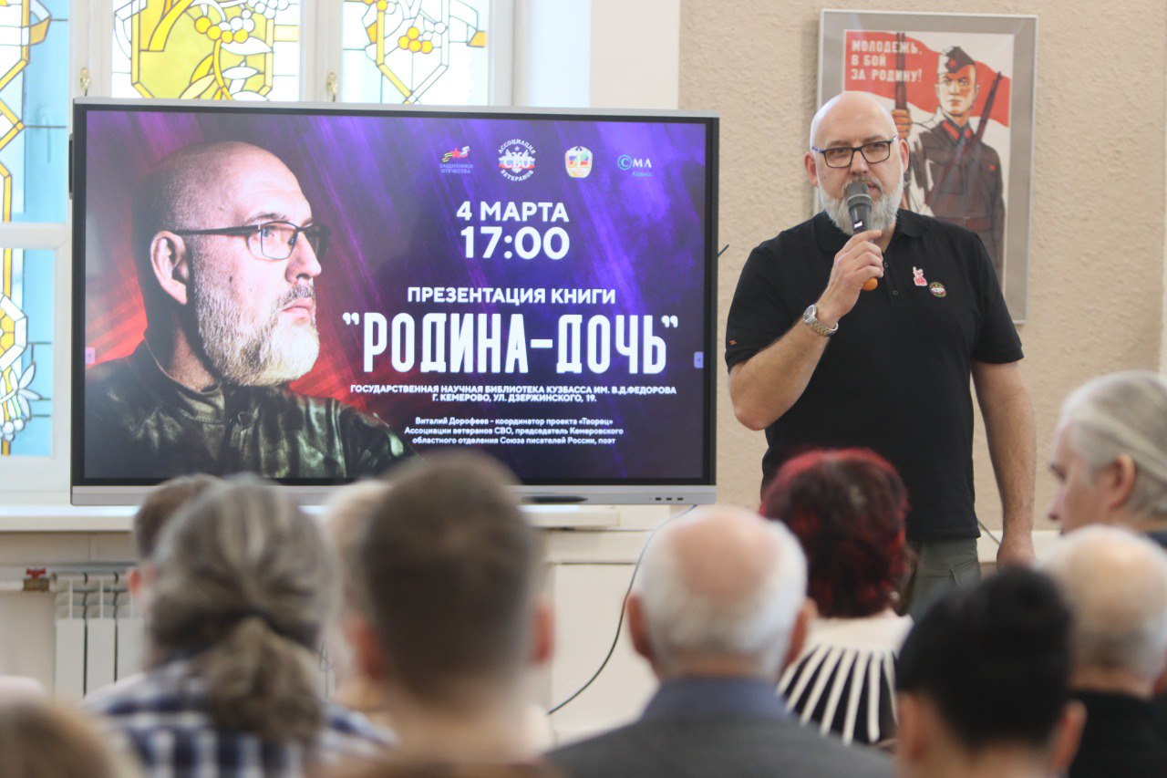 В рамках открытия выставочного проекта состоялась презентация книги Виталия Дорофеева «Родина-Дочь», изданной в рамках проекта «Творец», направленного на поддержку творчества участников СВО. Сборник «Родина-Дочь» – это хроника переживаний и судеб, переплетенных с событиями СВО, продолжение книги «Боги переднего края». В ней автор размышляет о судьбе Родины через образ Родины-Дочери.