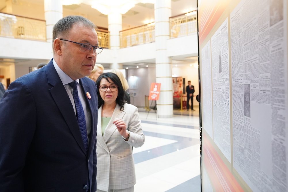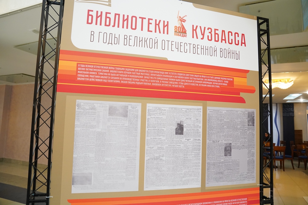 В фойе филармонии работала выставка «Культура Кузбасса в годы Великой Отечественной войны», на которой были представлены документы и фотографии, отражающие деятельность домов культуры, театров, цирков, кинотеатров, музеев и библиотек в период 1941 – 1945 гг.