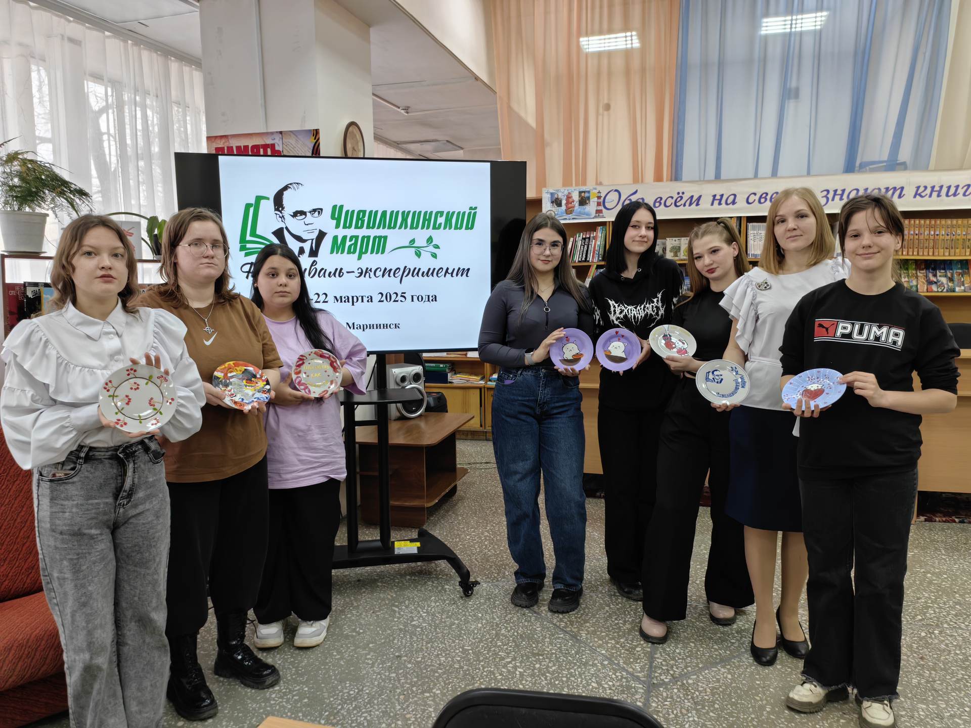 В рамках работы площадки «Артсоюз: от слова к линии и цвету» прошло открытие выставки-конкурса изобразительного искусства «Серебряные рельсы», посвящённой темам «Человек» и «Природа», которые раскрывает в своих повестях Владимир Чивилихин. Оценивала работы художник-живописец из г. Красноярска Елена Ильянкова, которая провела для ребят мастер-класс по живописи. Мастер-классы по росписи в технике линогравюры с изображениями достопримечательностей Мариинска, а также по книжной графике и рисованию пастелью провели преподаватели художественной школы № 10.