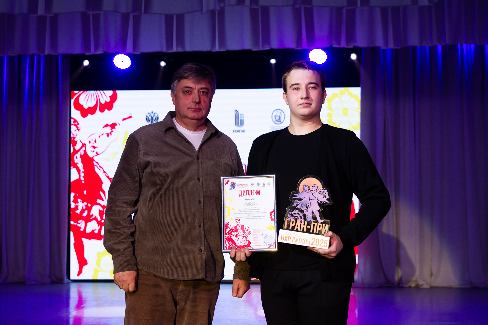 28 марта 2025 года в КемГИК подвели итоги Всероссийского конкурса народного танца «Виртуозы». В концертном зале института культуры прошел яркий гала-концерт с участием лучших танцоров из Кемеровской, Томской, Новосибирской областей, Красноярского и Алтайского краев.Гран-при конкурса завоевал дуэт Кочева Захара и Сусловой Дарьи за номер «Ревнивый жених» (Иркутский областной колледж культуры, г. Иркутск).