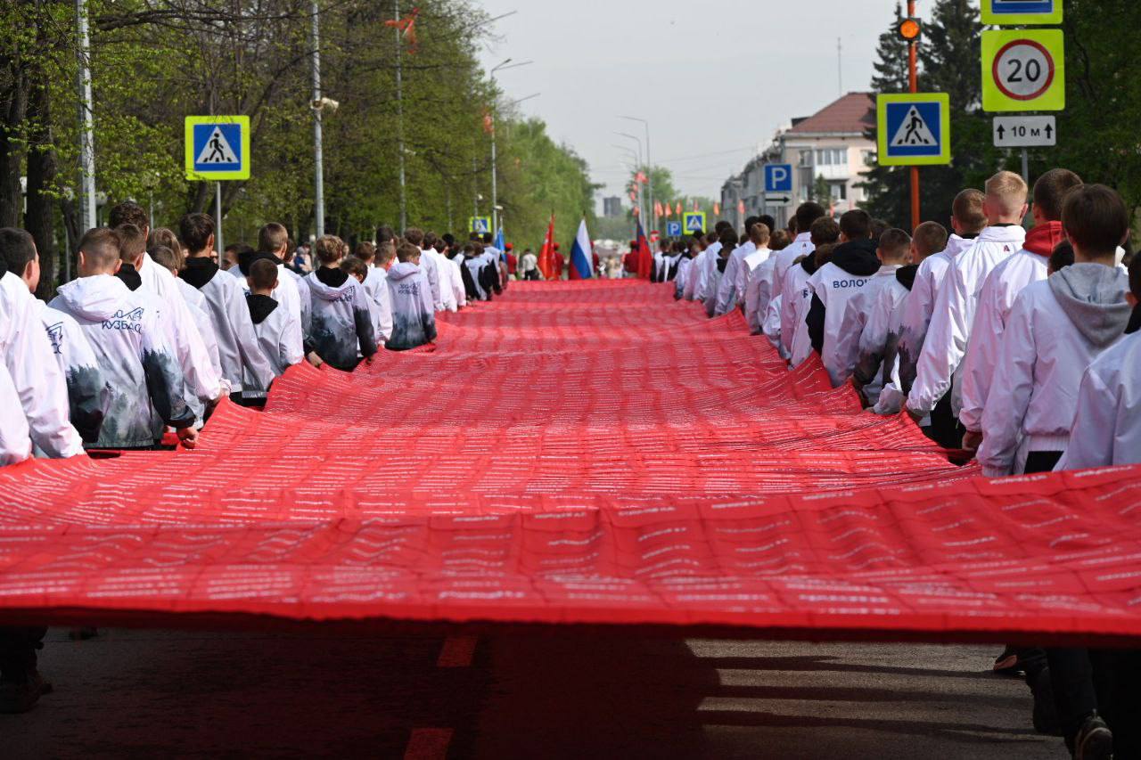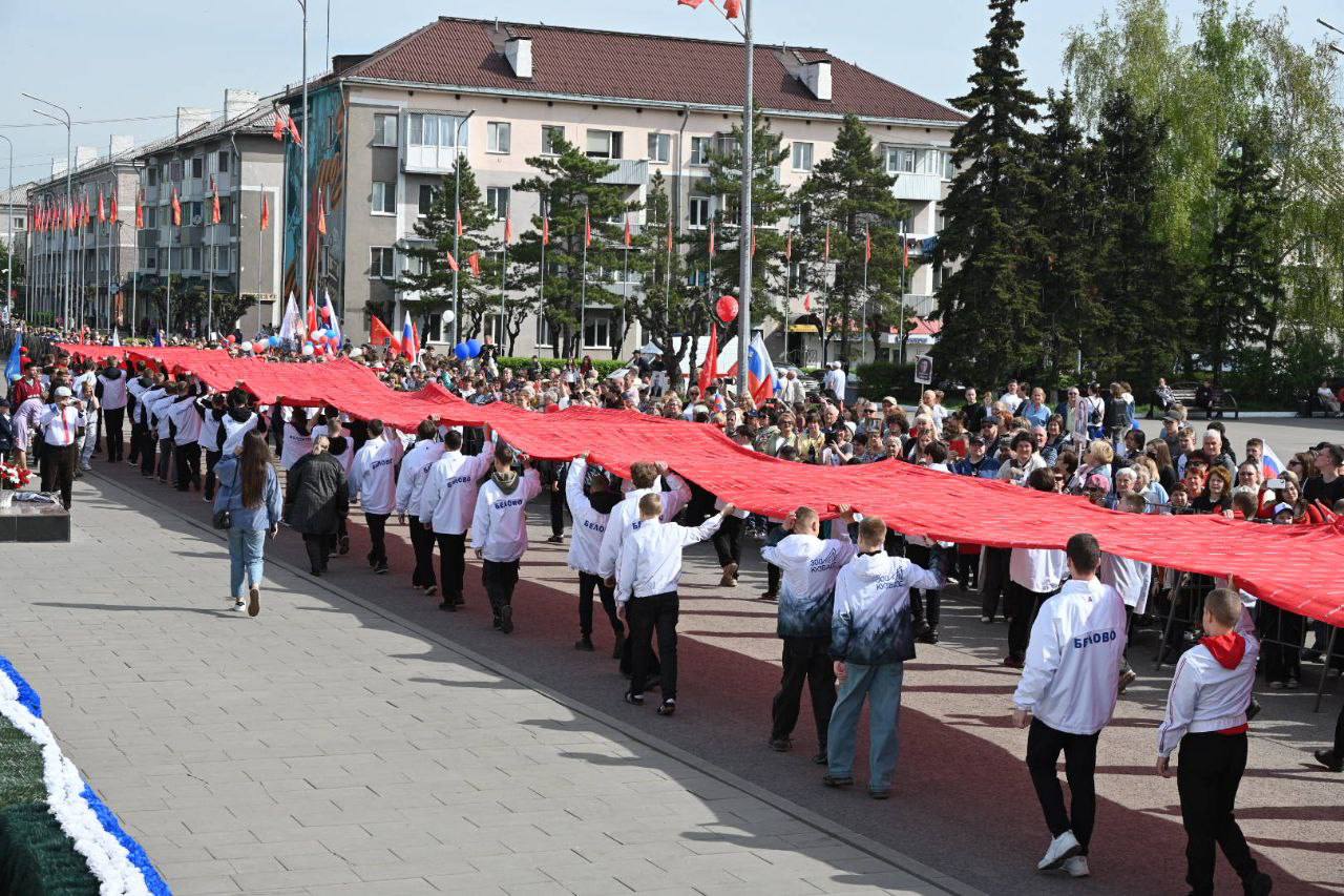 В Белове в колонне «Бессмертного полка» пронесли «Полотно Победы». Оно состоит из лоскутов красной ткани размером 20х20 см, на которых беловчане вышили 6 618 имен земляков, не вернувшихся домой с Великой Отечественной войны, специальной военной операции, локальных войнах и военных конфликтах. Общий размер полотна составил 90х3,2 м.