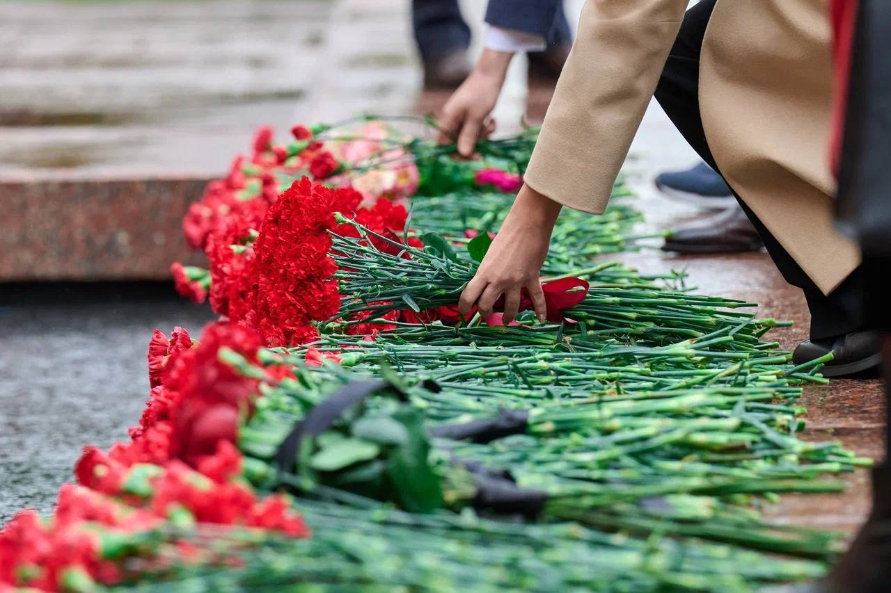 Во время возложения венков присутствующие почтили память павших минутой молчания.