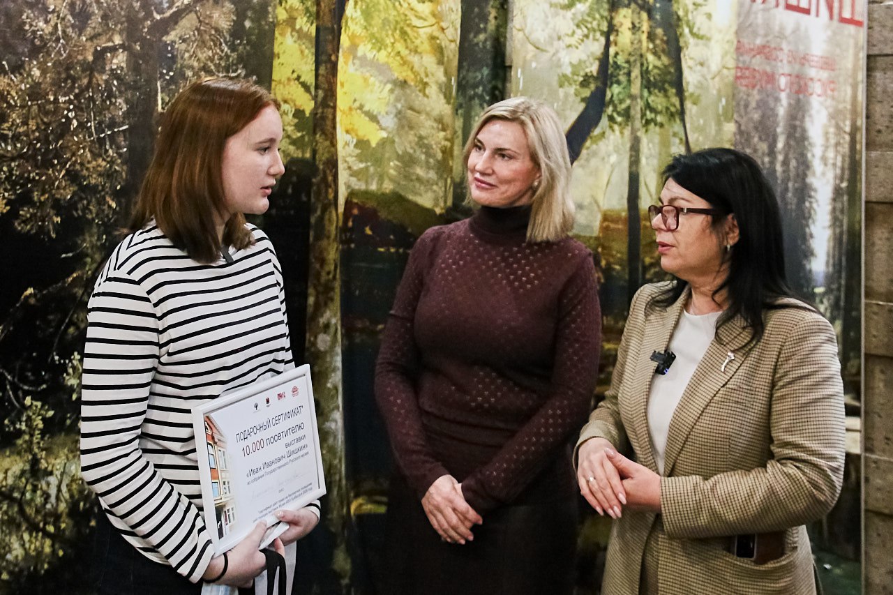Директор музея Ольга Широкова вручила ей сертификат на бесплатное посещение до конца 2026 года, альбом с репродукциями из музейной коллекции и блокнот, чтобы первые художественные мысли находили своё место на бумаге. От Государственного Русского музея подарки передала Анна Юдина: фирменный шопер, термокружка с символикой учреждения.
