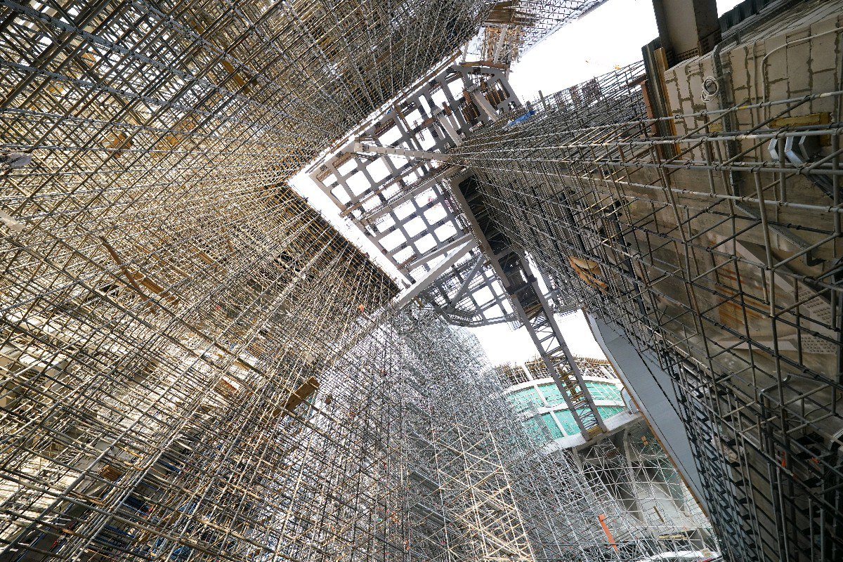 В филиале Русского музея полностью готов каркас здания, завершены работы по огнезащите металлических конструкций. Сейчас специалисты проводят устройство инженерных коммуникаций, внутреннюю отделку помещений и подготовку фасадных работ.