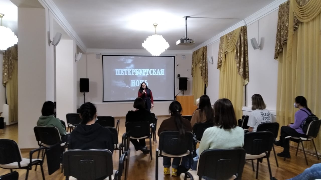В Кемерове в Государственной научной библиотеке Кузбасса им. В.Д.Федорова состоялся бесплатный показ киноленты «Петербургская ночь» и начала работу выставка картин Творческого Союза художников России по Кемеровской области «Предстояние». Участие в мероприятии приняла Председатель Совета по вопросам попечительства в социальной сфере Кузбасса Анна Цивилева.