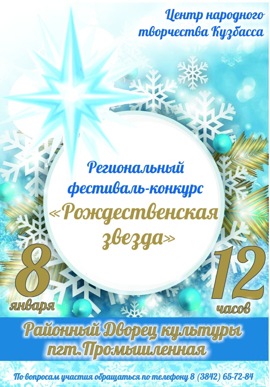 «Рождественская звезда» состоится 8 января в 12:00 в Районном Дворце культуры Промышленновского муниципального округа.