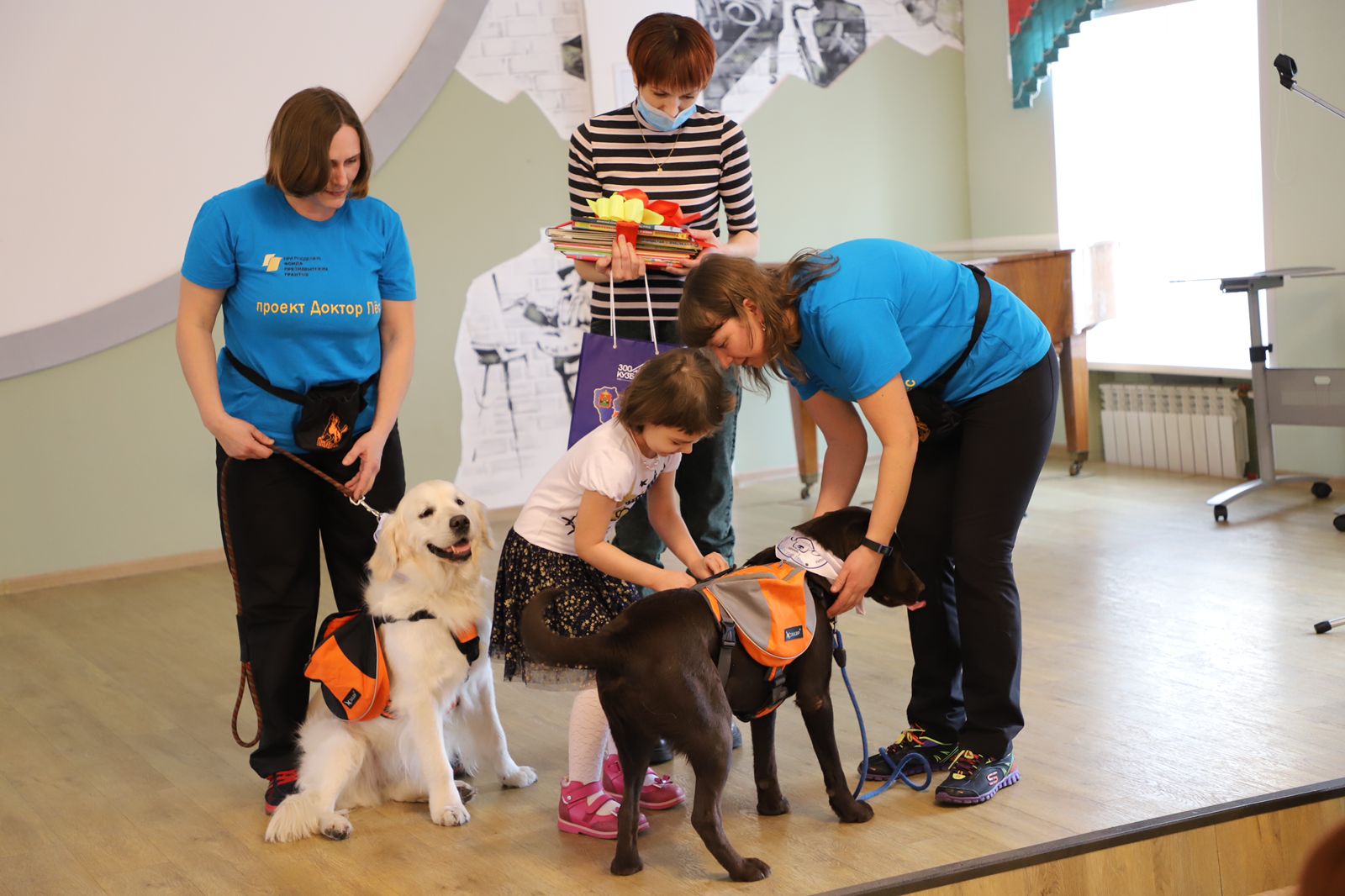 Сегодня, в Международный день книгодарения, в Государственной библиотеке для детей и молодежи юным читателям с ограниченными возможностями здоровья вручили более 150 новых детских книг, собранных неравнодушными кемеровчанами. Книги детям вручали амбассадор акции - золотистый ретривер Умка и собаки-терапевты из проекта «Доктор пёс».Акция проходила во всех библиотеках Кузбасса с 10 января по 13 февраля. Её цель - поддержка детского чтения и возрождение в обществе традиций книгодарения. Лидером этой акции по количеству подаренных книг стал Мариинский муниципальный округ - 1118 книг. Среди собранных книг - произведения русских, зарубежных классиков, современных писателей, в том числе и кузбасских, научно-популярная литература, познавательные энциклопедии, книги для семейного чтения.