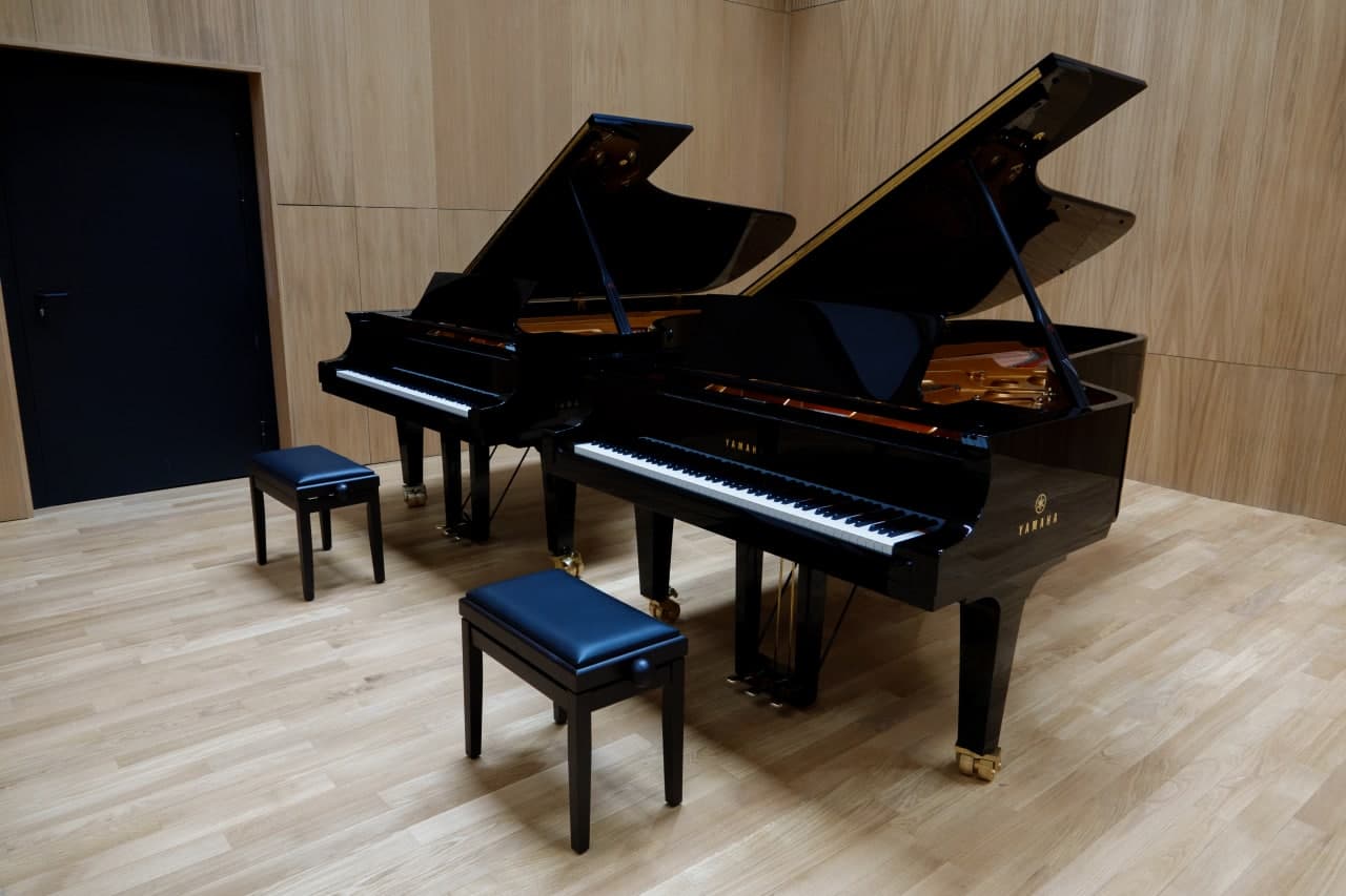 Главная гордость зала — легендарные концертные рояли Steinway & Sons. Такие инструменты используют на ведущих концертных площадках мира. Для профессиональной звукозаписи установлена система, позволяющая делать фонограммы в сверхвысоком разрешении DXD/DSD256.