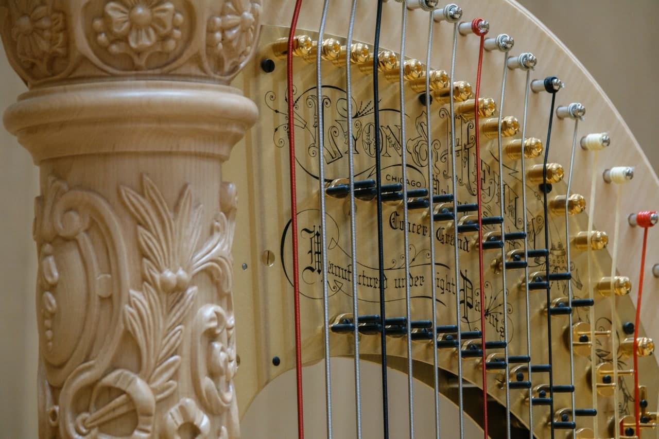 Для выступлений юных артистов установлены две арфы (единственные в Кузбассе), также имеется полный набор ударных инструментов: литавры, маримбы, ксилофоны, вибрафоны и другие.