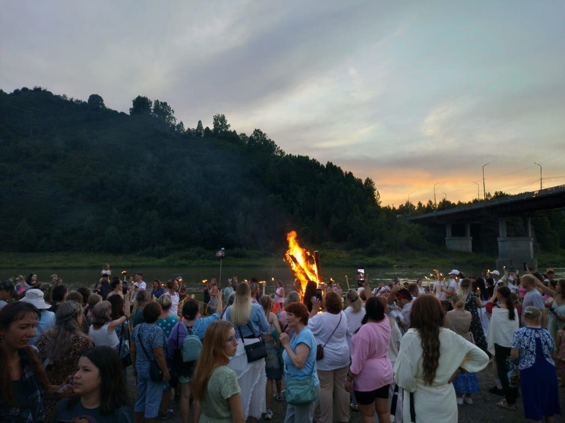 Вечернее театрализованное представление на реке, включающее гадание со спуском венков на воду и обряд с вениками.