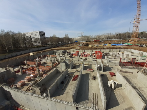 На стройплощадке общеобразовательной школы для воспитанников филиалов МГАХ и ЦМШ «Сибирский» выполнены работы по устройству ростверка, ведется армирование и бетонирование стен и колонн цокольного этажа.
