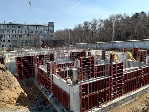 Рабочие приступили к строительству общежития для студентов Высшей школы музыкального и театрального искусств: на 100 % выполнены работы по устройству ростверка, армированию и бетонированию стен и колонн цокольного этажа. Ведутся работы по бетонированию перекрытия первого этажа, армированию и бетонированию стен и колонн первого этажа.