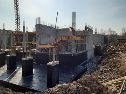 Для учебного корпуса филиала ЦМШ «Сибирский» с концертным залом выполнено бетонирование ростверка, полностью выполнены работы по устройству гидроизоляции, по армированию и бетонированию стен и колонн. Выполнено бетонирование перекрытия первого этажа и частичное бетонирование стен и колонн первого этажа.