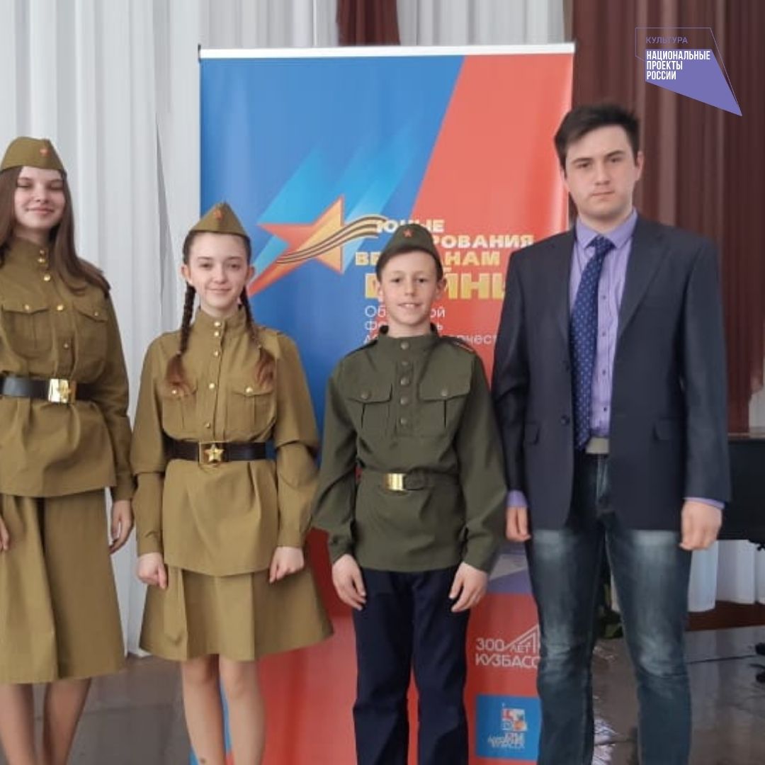 В канун празднования Дня Победы стартовал Областной фестиваль детского творчества «Юные дарования – ветеранам войны». Фестиваль проходит под эгидой национального проекта «Культура».Цикл мероприятий включает концертные выступления одаренных детей для ветеранов, мастер-классы, выставки и патриотические акции. Первыми в фестивальном марафоне приняли участие юные вокалисты Гурьевска и Прокопьевска.