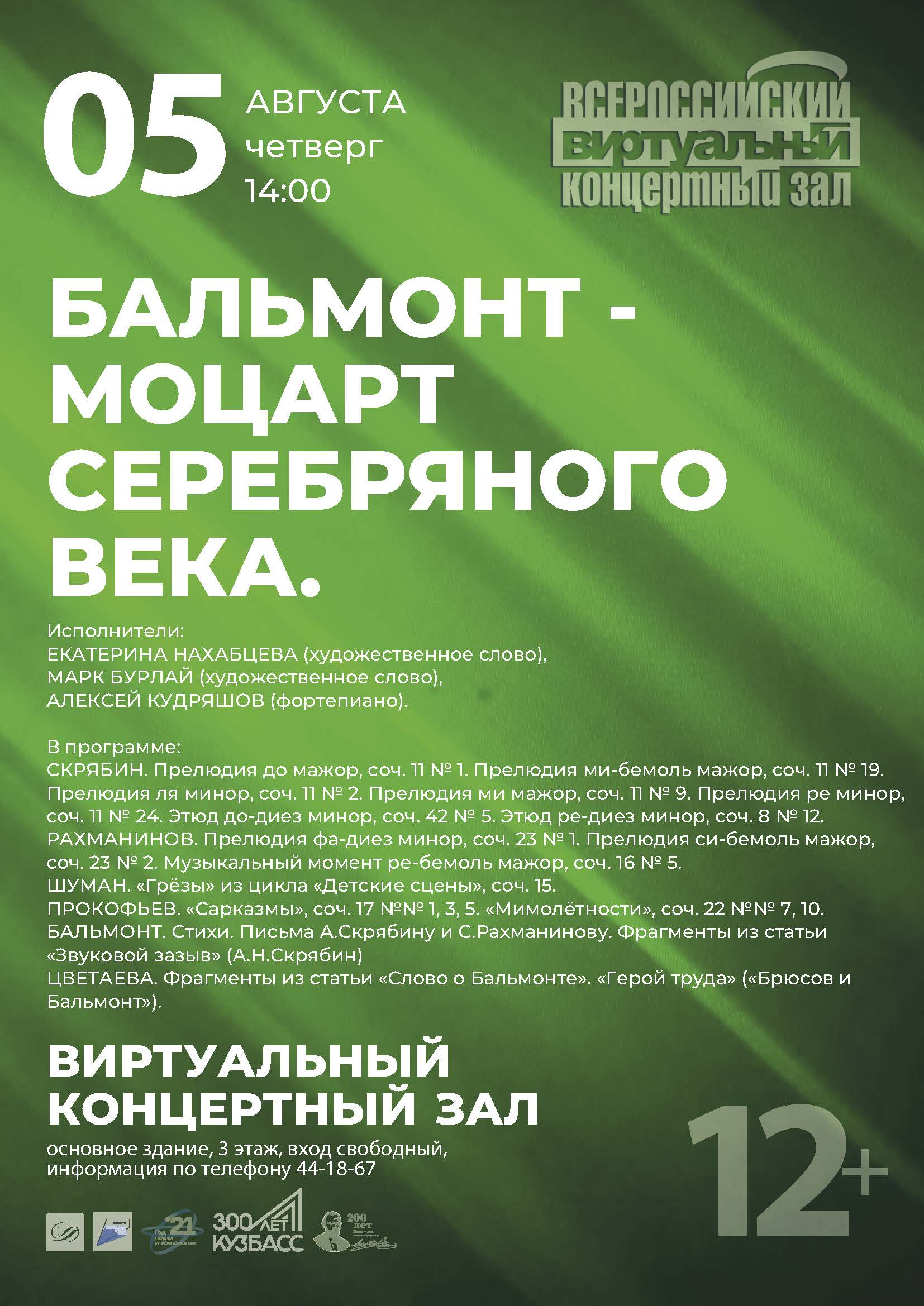 День досуга в Виртуальном концертном зале главной библиотеки Кузбасса: концерт «Бальмонт – Моцарт Серебряного века»