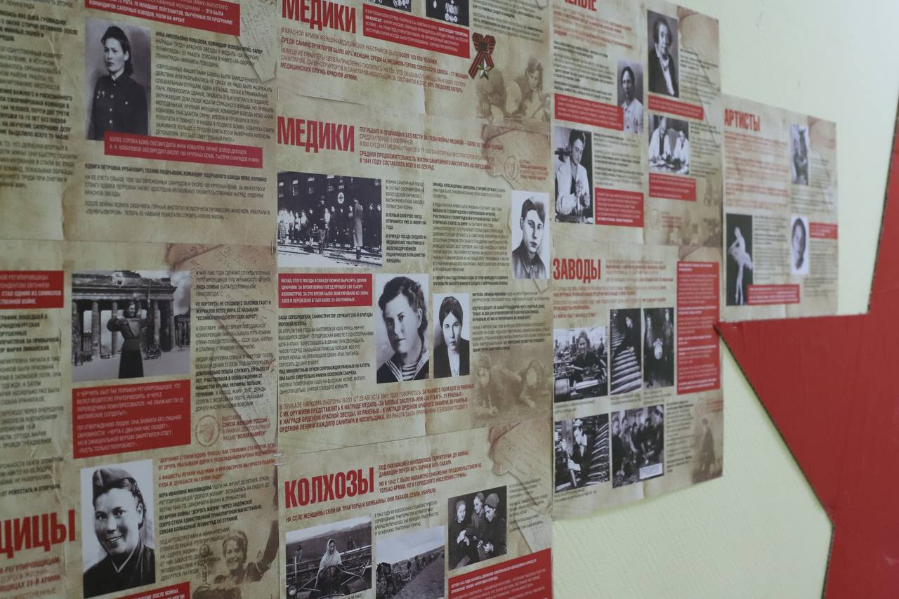 На выставке представлены яркие судьбы женщин, освоивших воинские профессии и воевавших наравне с мужчинами. Это медики, разведчики, водители, снайперы, танкисты, морские пехотинцы.