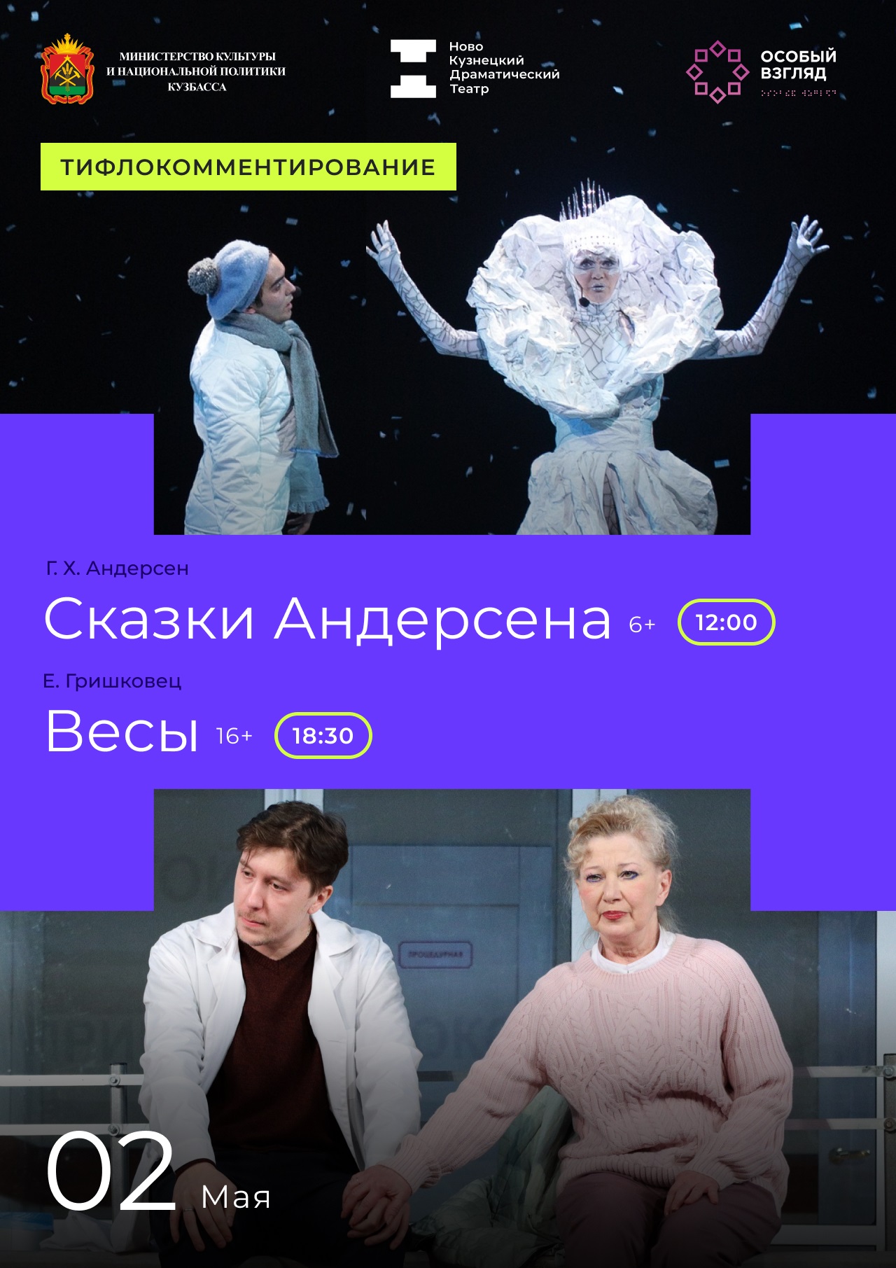 2 мая пройдут показы «Сказки Андерсена» (в 12:00) и «Весы» (в 18:30).