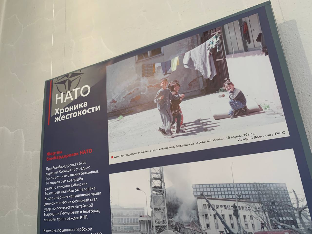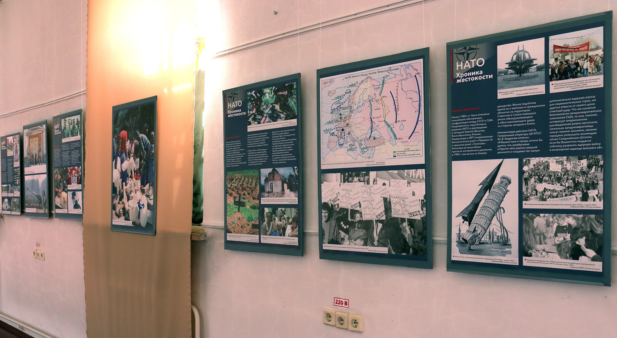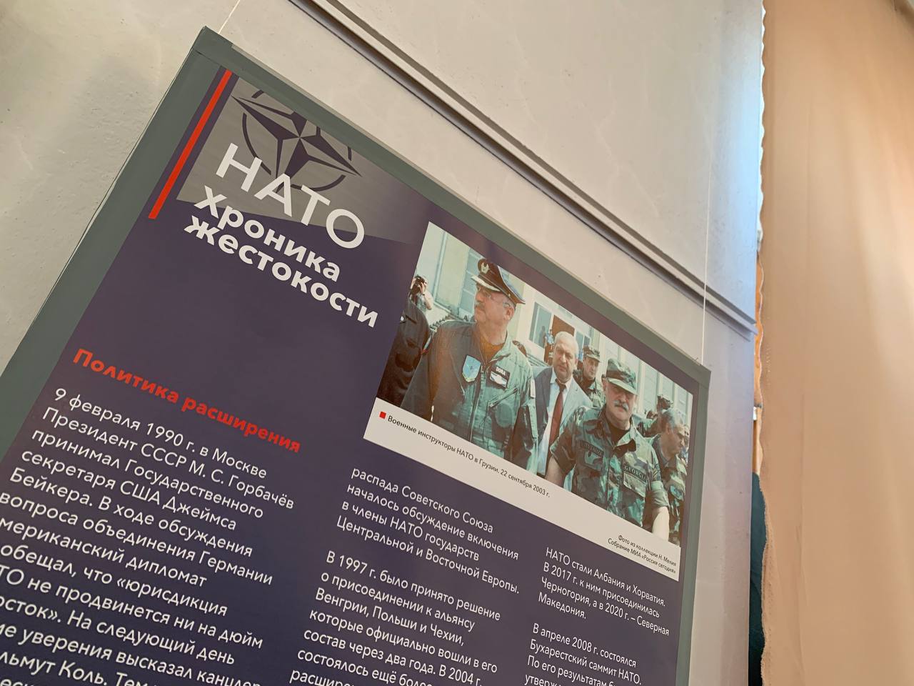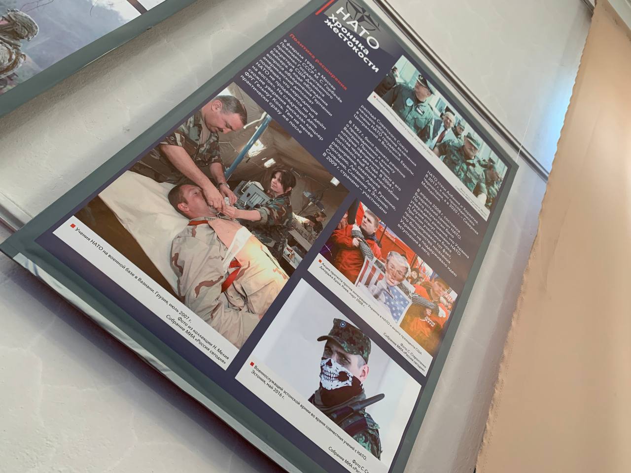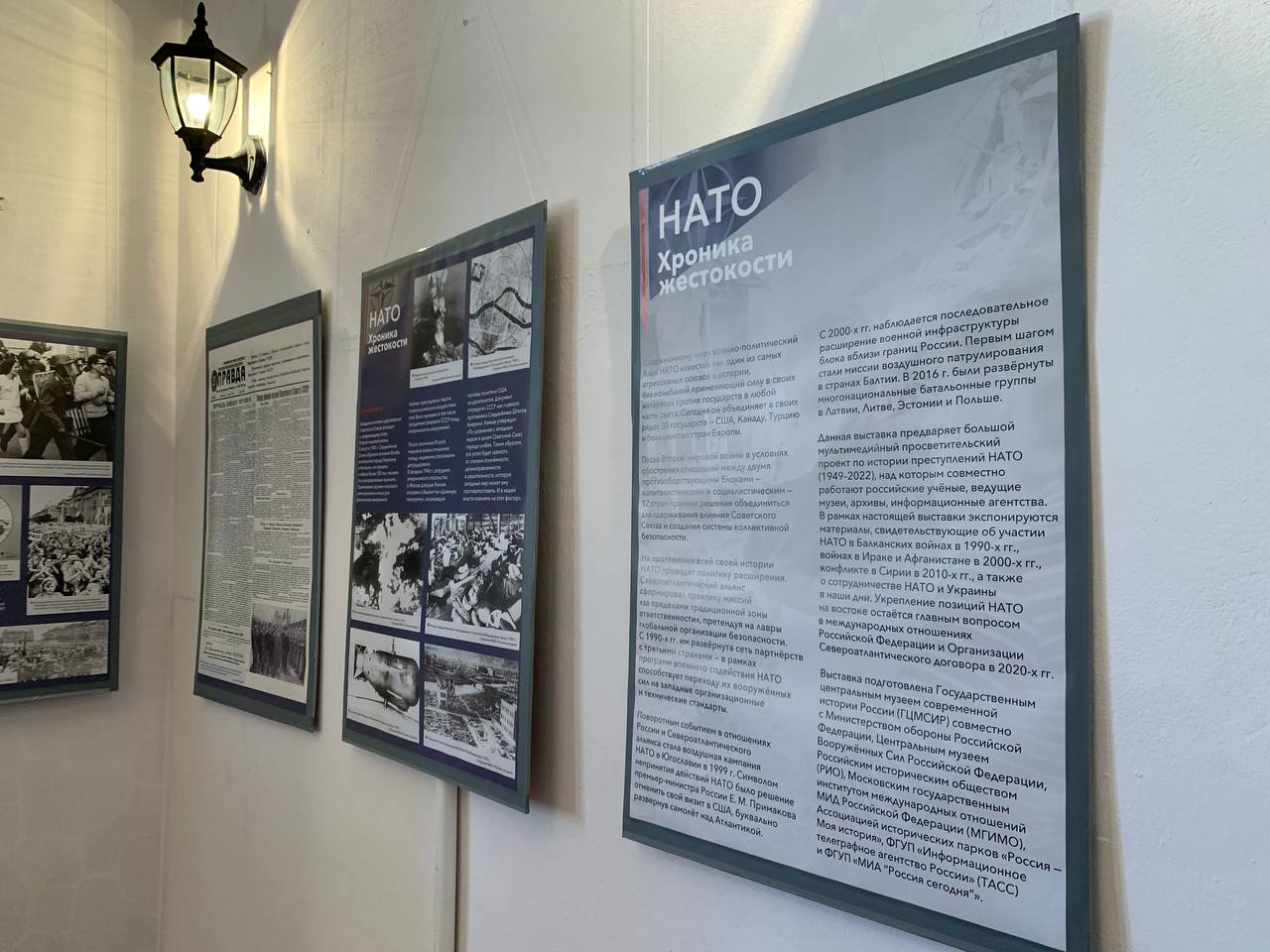 Выставка основана на документальных фотографиях из собрания ТАСС и МИА «Россия сегодня», артефактах и документах из собрания Музея современной истории России, относящихся к периоду Холодной войны. Данная выставка предваряет большой мультимедийный просветительский проект по истории преступлений НАТО (1949-2022), над которым совместно работают российские ученые, ведущие музеи, архивы, информационные агентства. В Новокузнецке выставка будет работать в музее-заповеднике «Кузнецкая крепость» в здании Солдатской казармы до 19 мая 2022 года. Возрастное ограничение — 16+.