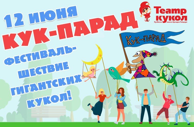 В Театре кукол Кузбасса полным ходом идет подготовка к первому в истории Кузбасса региональному фестивалю гигантских кукол «Кук-Парад».Уже 12 июня, в День России и День города красочная колонна ростовых кукол отправится в путешествие от Театра кукол им. А.Гайдара до Театра драмы им. А.В. Луначарского, затем по улице Весенней до набережной, финальной точкой парада станет Парк чудес.