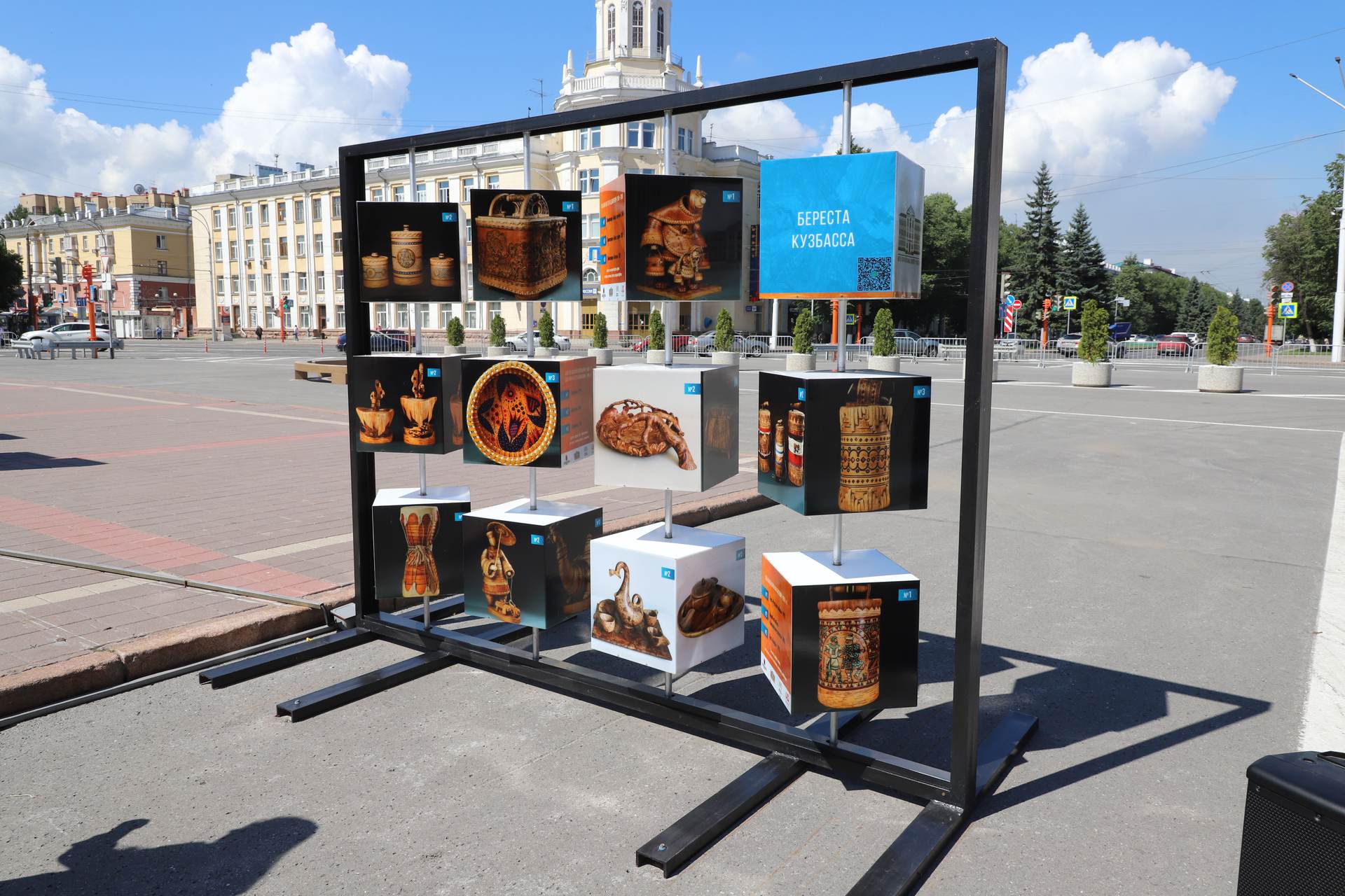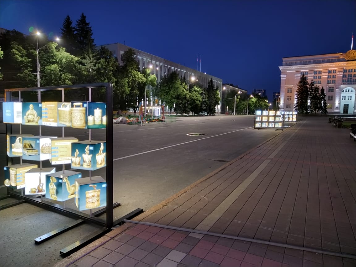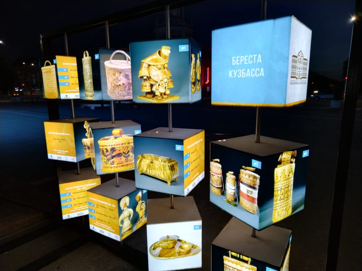 В рамках Года культурного наследия народов России, объявленного президентом страны Владимиром Путиным, в КуZбассе стартовал проект «Галерея под открытым небом». Жители региона смогут увидеть уникальные коллекции из запасников музея ИЗО. Фотографии произведений декоративно-прикладного искусства размещены на кубах, которые в вечернее время подсвечены изнутри.«Любой прохожий может стать посетителем выставки под открытым небом. Посмотреть уникальные работы мастеров декоративно-прикладного искусства жители и гости областной столицы смогут до конца ноября этого года. За это время информация на стендах будет обновлена три раза, благодаря чему кузбассовцы смогут ознакомиться с более чем 400 произведениями. Открытие этого выставочного пространства, без сомнений, позволит с пользой проводить время на открытом воздухе и найти для себя много нового и интересного», — подчеркнула министр культуры и национальной политики КуZбасса Анна Юдина.