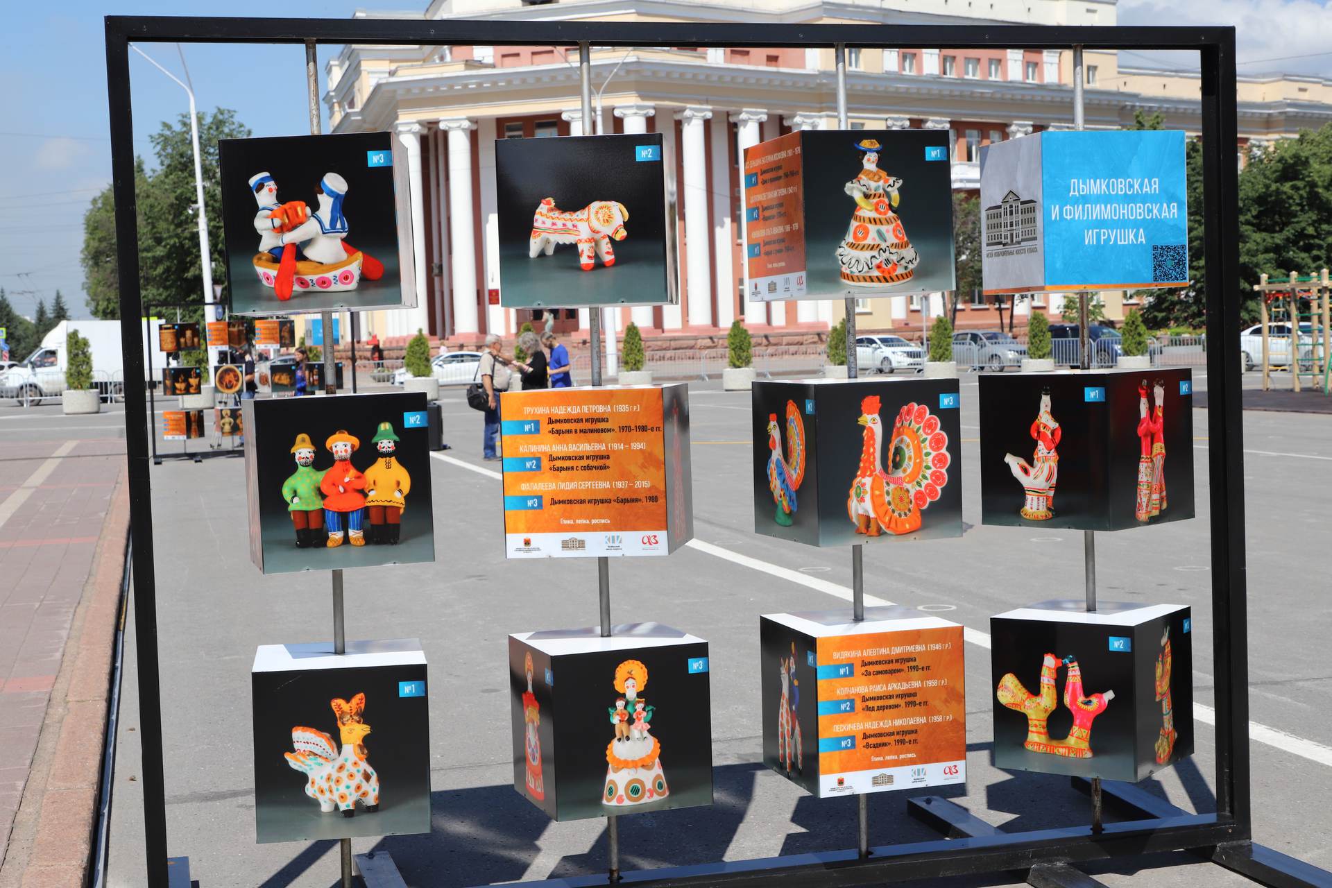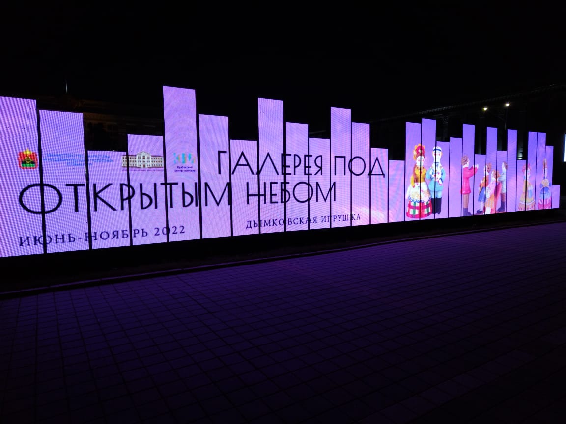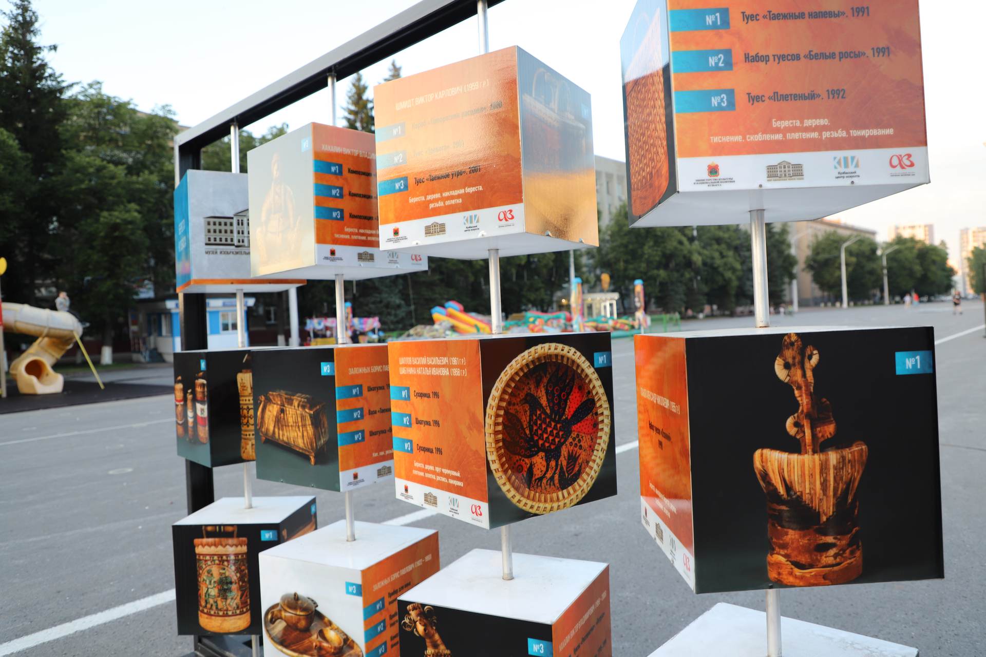 В рамках Года культурного наследия народов России, объявленного президентом страны Владимиром Путиным, в КуZбассе стартовал проект «Галерея под открытым небом». Жители региона смогут увидеть уникальные коллекции из запасников музея ИЗО. Фотографии произведений декоративно-прикладного искусства размещены на кубах, которые в вечернее время подсвечены изнутри.«Любой прохожий может стать посетителем выставки под открытым небом. Посмотреть уникальные работы мастеров декоративно-прикладного искусства жители и гости областной столицы смогут до конца ноября этого года. За это время информация на стендах будет обновлена три раза, благодаря чему кузбассовцы смогут ознакомиться с более чем 400 произведениями. Открытие этого выставочного пространства, без сомнений, позволит с пользой проводить время на открытом воздухе и найти для себя много нового и интересного», — подчеркнула министр культуры и национальной политики КуZбасса Анна Юдина.