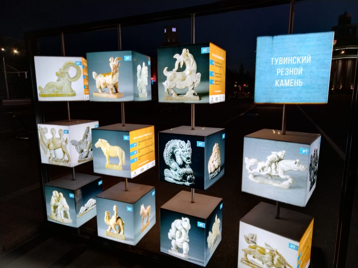На первой выставке проекта «Галерея под открытым небом» представлены фото 135 произведений декоративно-прикладного искусства. Это уникальные коллекции мариинской бересты, дымковской игрушки и тувинского резного камня.