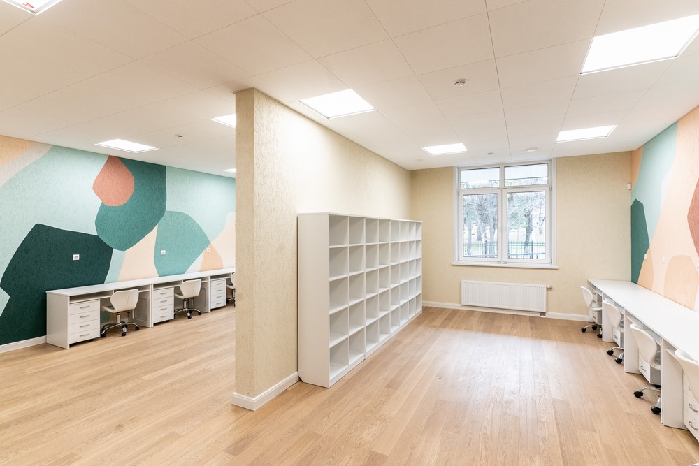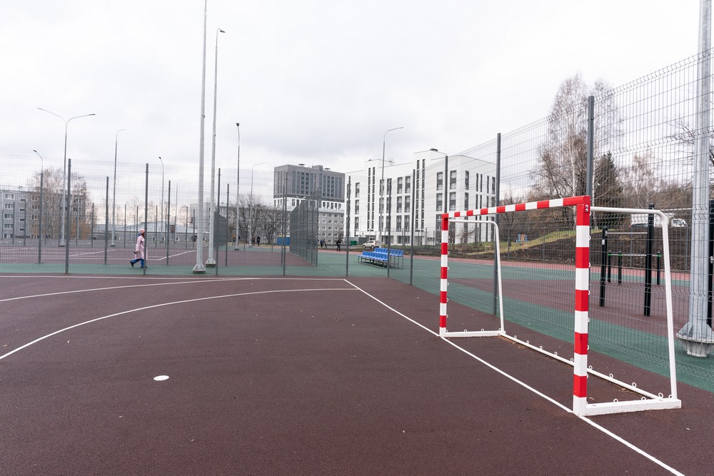 Немало места – 10 297 кв.м. – на территории образовательного городка отведено для занятий спортом: есть стадион и сектора для прыжков в высоту и длину, гимнастики, игры в теннис и гандбол. В спортзону входят беговые дорожки, футбольное и волейбольное поля, баскетбольная площадка и полоса препятствий.