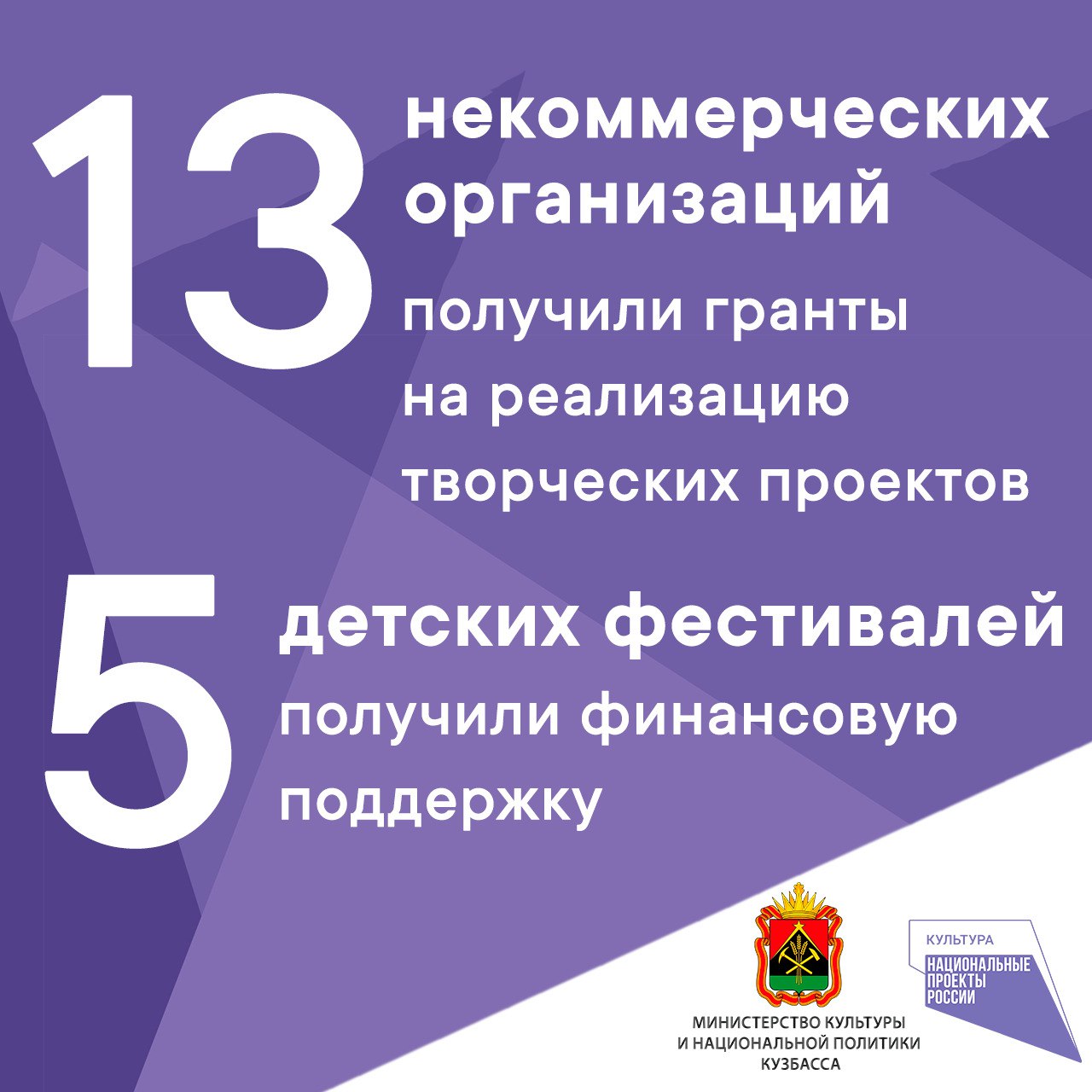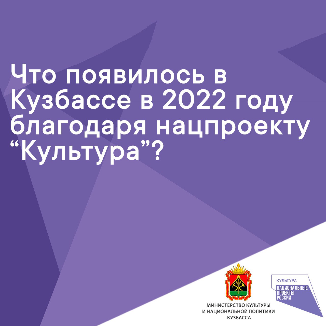 В рамках нацпроекта «Культура» в КуZбассе реализуются 3 региональных проекта: «Обеспечение качественно нового уровня развития культуры» («Культурная среда»), «Создание условий для реализации творческого потенциала нации» («Творческие люди»), «Цифровизация услуг и формирование информационного пространства в сфере культуры» («Цифровая культура»).