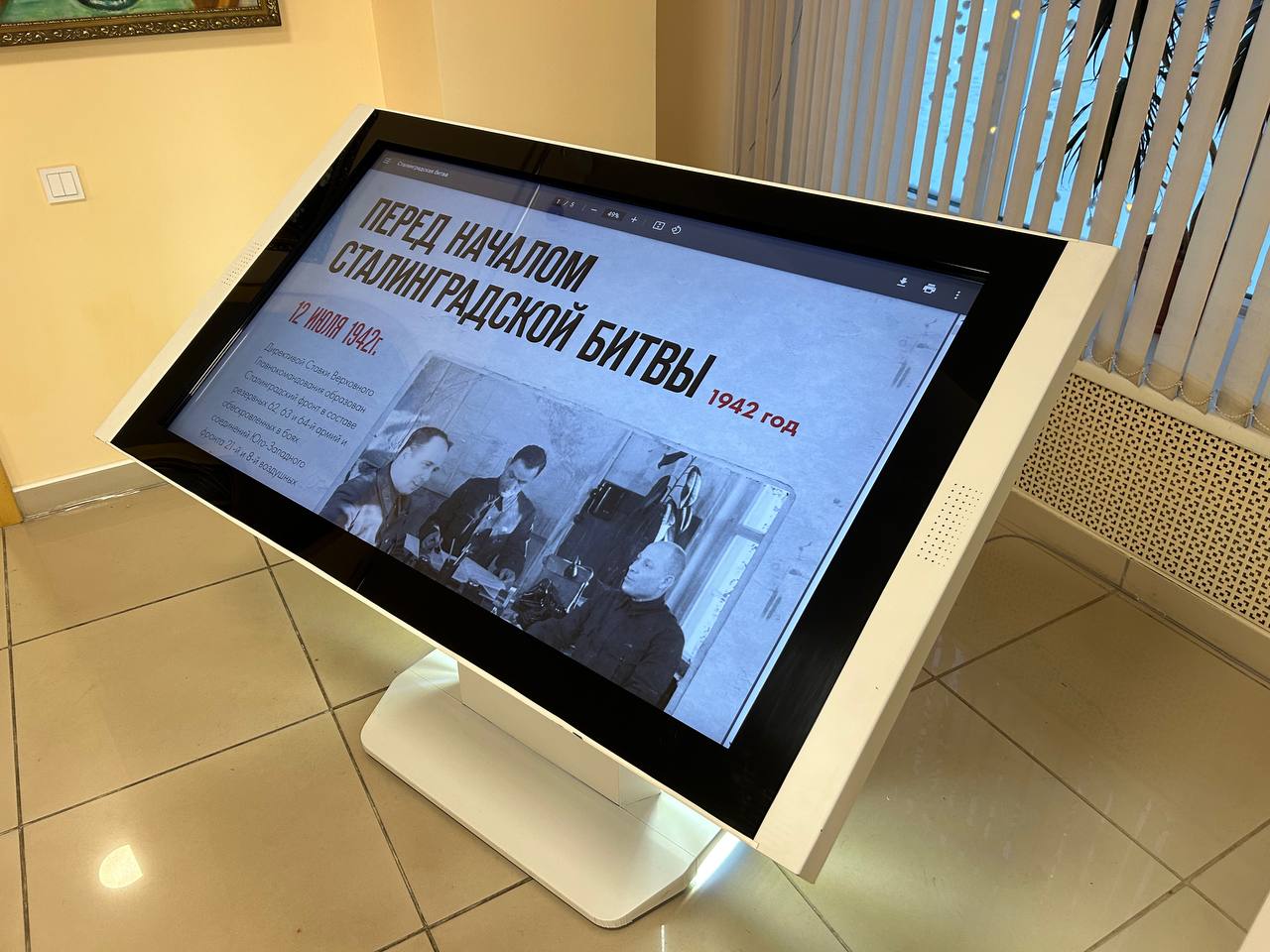 Каждый посетитель выставки познакомится с мультимедийным контентом «Сталинградская битва: основные этапы». Четко и последовательно изложенная хронология боевых действий каждого дня в современном исполнении позволит понять цену победы. Кроме того, благодаря интерактивным тач-панелям посетители узнают о героях-кузбассовцах, принявших участие в Сталинградской битве.