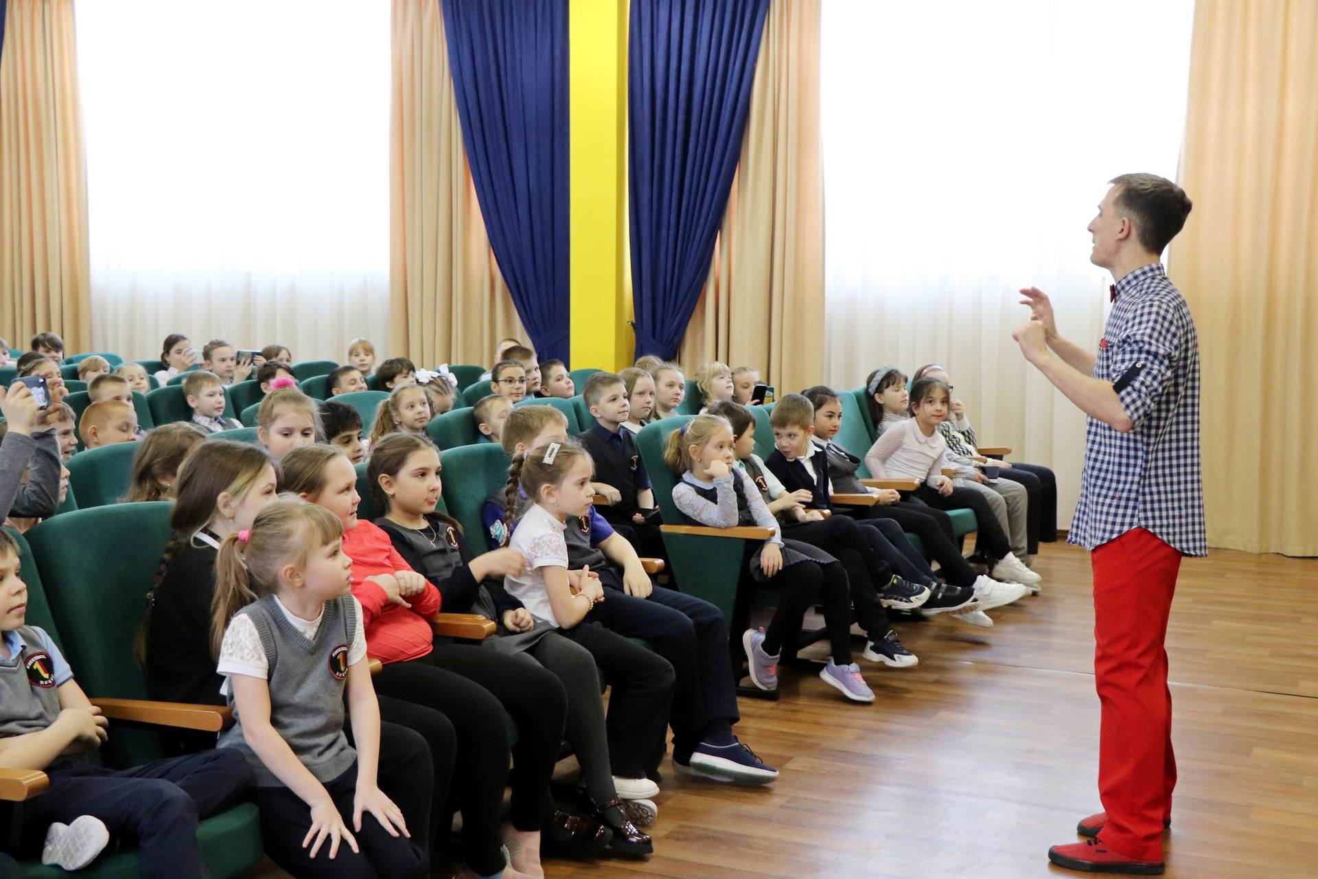 Для учеников начальной школы артисты представили интерактивный спектакль «Комар мечтает о зиме», который представляет театральный проект «Беби-театр».