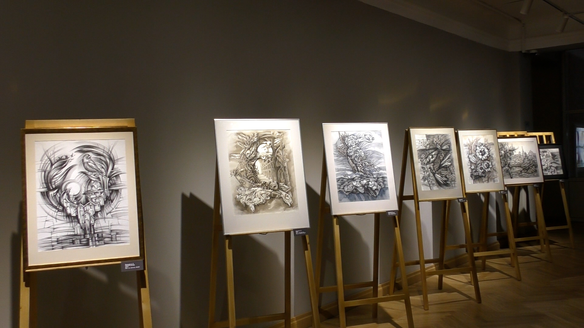Картины выполнены в различных графических техниках. Они построены на контрасте густого фактурного серого, черного, стерильно белого цветов и демонстрируют самобытный стиль мастеров.