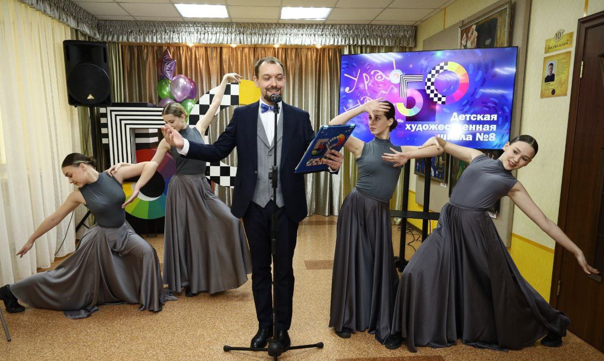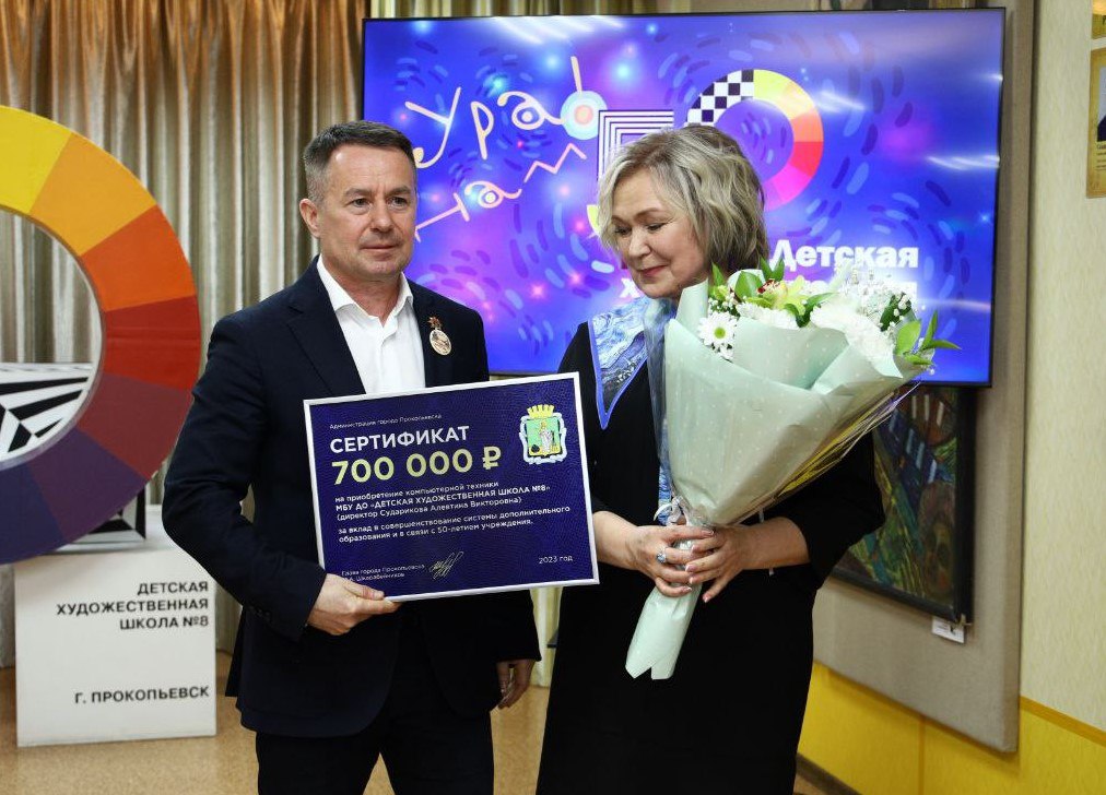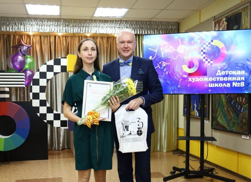 Педагоги и юные художники ДХШ №8 Прокопьевска принимают поздравления с 50-летним юбилеем школы