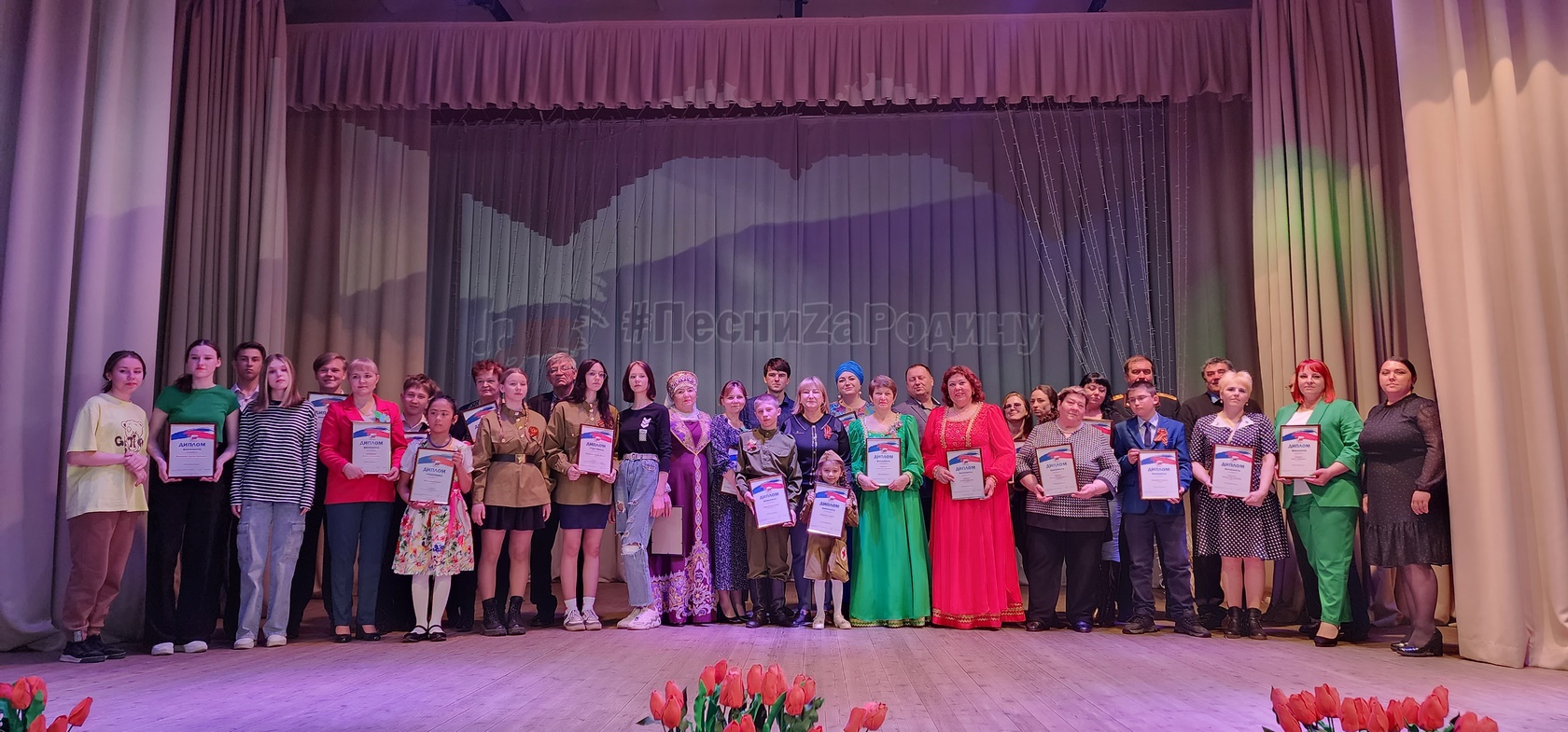 В Калининском Доме культуры Мариинского округа первый муниципальный этап конкурса собрал 170 участников разных возрастов. Самыми юными из них стали воспитанники детских садов Мариинска. Дети исполняли композиции «Любовь к России», «Земля родная», «Солнечный круг» и многие другие. Самой востребованной стала номинация «Лучшая военно-патриотическая песня», в ней прозвучали песни «Катюша», «О той весне», «Аист на крыше». Детский ансамбль «Смайлс» культурно-досугового объединения «Праздник» и детский вокальный коллектив «Задоринка» детского сада № 2 «Сказка» выступили в номинации «Самый яркий сценический образ».