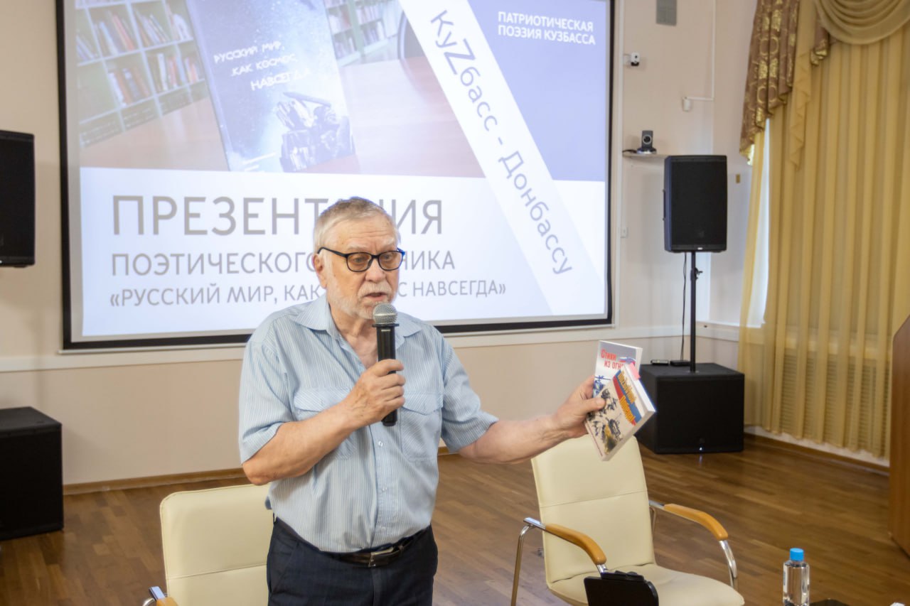В Главной библиотеке Кузбасса прошла презентация новой поэтической книги «Русский мир, как космос, навсегда».Сборник стихов посвящен Донбассу и СВО. Инициаторы издания – Союз писателей Кузбасса и Кузбасский центр искусств. Автор идеи издания сборника – Борис Бурмистров, известный в России кузбасский поэт, председатель Правления Союза писателей Кузбасса. Составители сборника – Борис Бурмистров, Сергей Донбай и Дмитрий Мурзин.