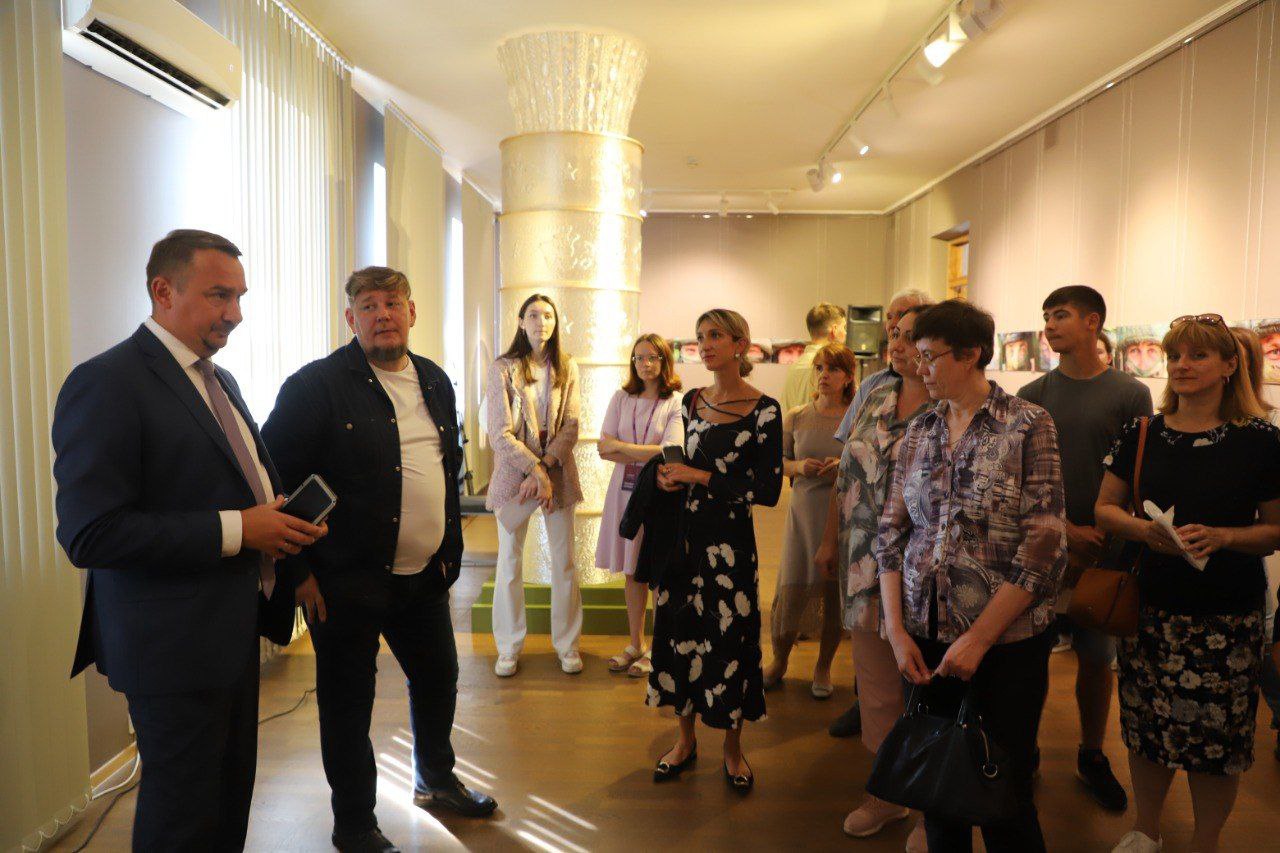 На торжественном открытии присутствовали авторы выставки – архитектор Денис Бобылев и скульптор Константин Зинич. Они вместе со скульптором Дмитрием Клавсуцом, фотографом Максимом Малашенко и руководителем Музея истории фотографии «МИФ» посетили Луганск, познакомились и пообщались с военнослужащими, врачами и учителями, и предоставили нам возможность увидеть военный и гражданский быт, и заглянуть в глаза тех, кто сегодня не смог остаться в стороне.