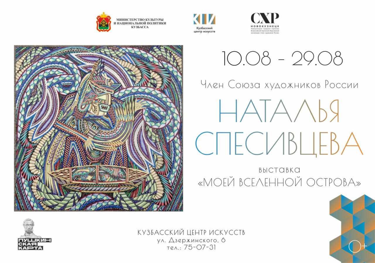 10 августа в Кузбасском центре искусств начинает работу персональная художественная выставка «Моей вселенной острова» члена Новокузнецкого городского отделения ВТОО «Союз художников России» Натальи Спесивцевой.Творческая встреча с автором состоится 15 августа в 16.00.