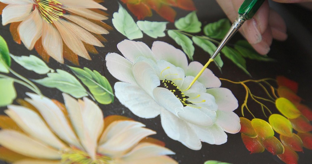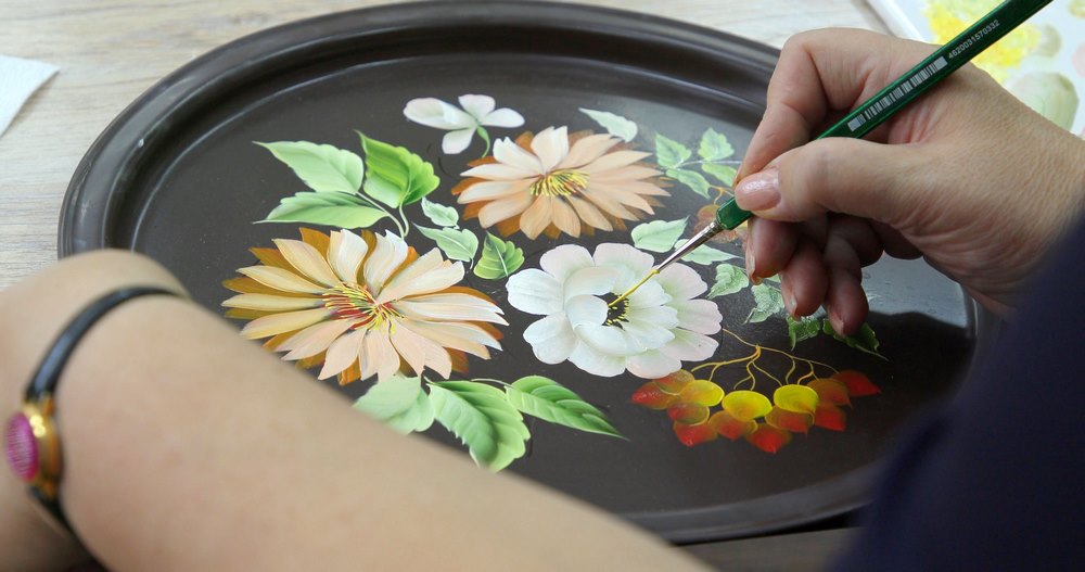 Ольга Парухина из Прокопьевска распишет 5 праздничных подносов в традиционной кемеровской технике. Сейчас очень мало специалистов владеют этой уникальной росписью, в основе которой лежат мотивы сибирской природы. «Кемеровское письмо» создано на основе смешения двух техник — жостовской и нижнетагильской. Ее характерная особенность — двухцветный мазок.