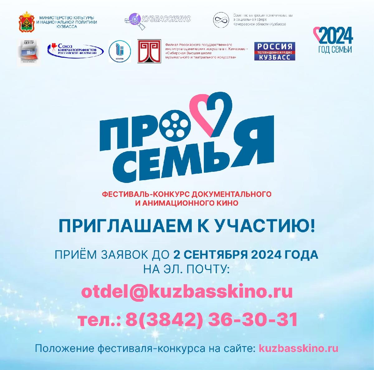 В рамках Года семьи, объявленного Президентом РФ Владимиром Путиным, стартовал Всероссийский проект «Всей семьей!». Участвовать в нем могут все семьи, независимо от региона, национальности, состава. В Кузбассе впервые проведут фестиваль-конкурс документального кино и анимации «ПроСемья».«Фестиваль-конкурс «ПроСемья» — значимое событие для регионального кинематографа. Он способствует созданию кузбасскими авторами нового документального кино, формирующего духовные и нравственные ориентиры: положительный образ семьи, позитивное отношение к семье и браку, радость отцовства и материнства, забота о родителях, достойное воспитание молодого поколения. У каждого жителя Кузбасса будет возможность создать документальный фильм о своей семье», — отмечает министр культуры и национальной политики Кузбасса Ольга Феофанова.